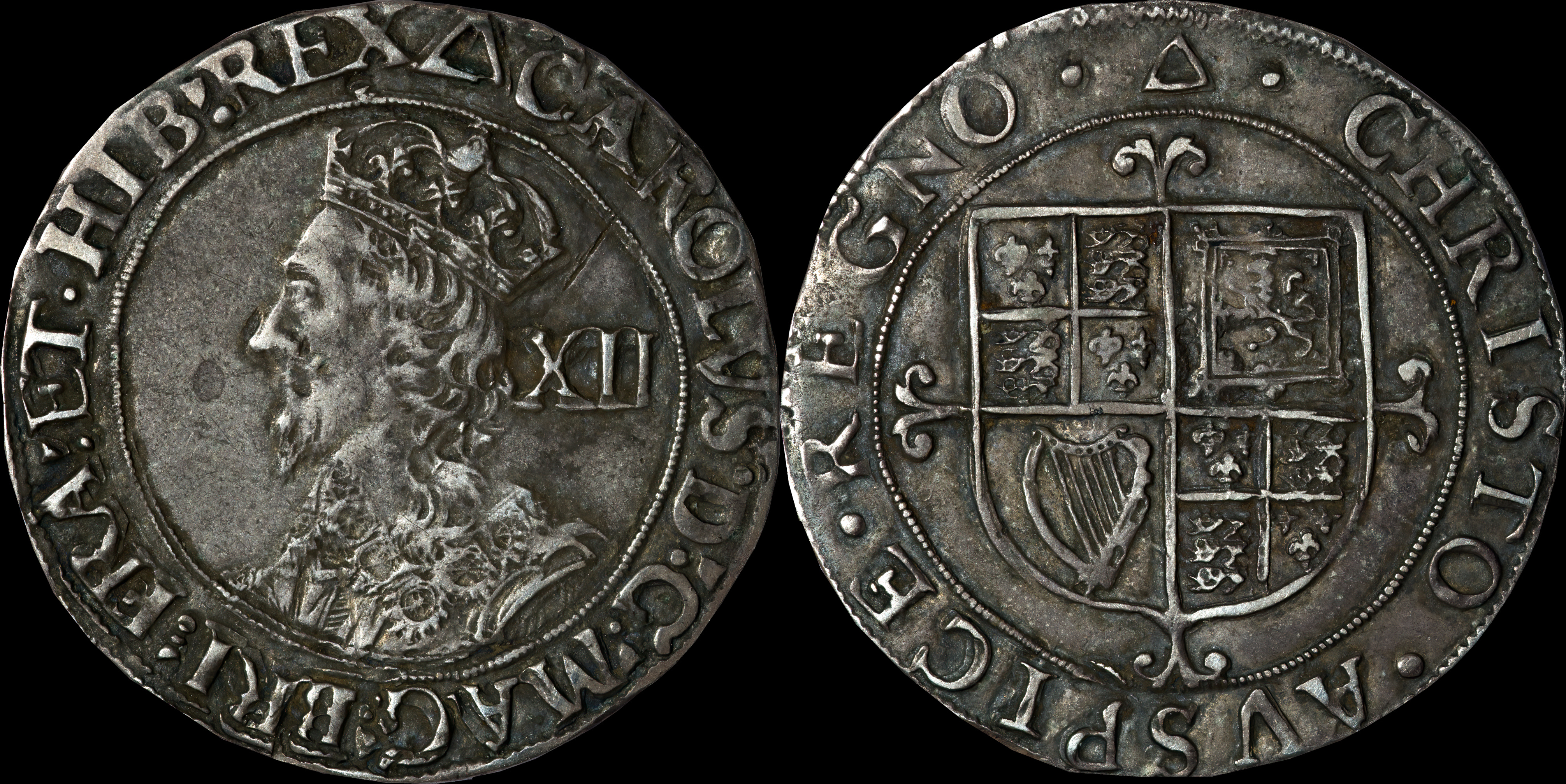CAROLVS D G MAG BR FR ET HIB REX CHRISTO AVSPICE REGNO |