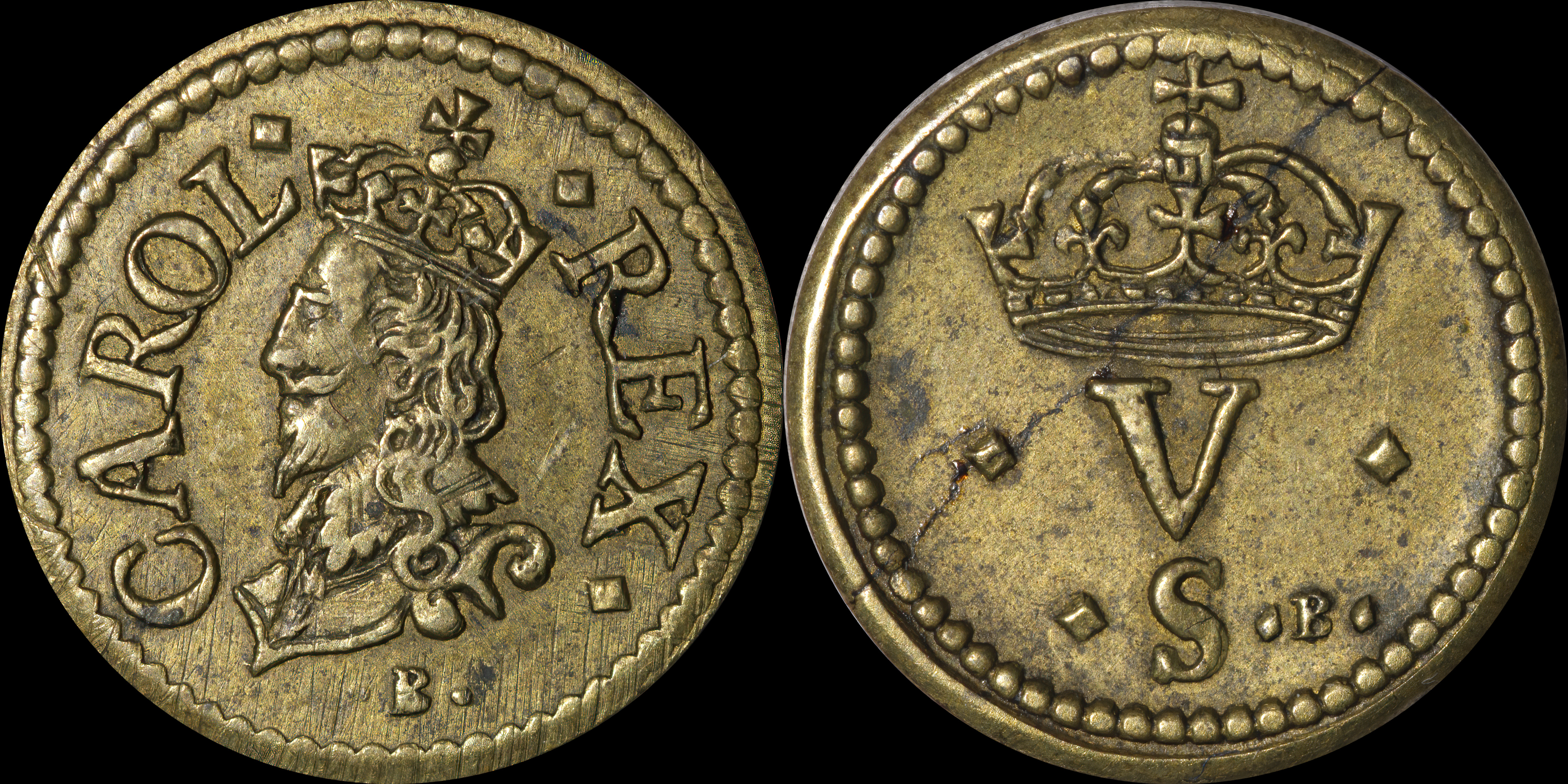 | Triangle mintmark. Ex Messing hoard. A in CAROLVS is missing the crossbar. | |