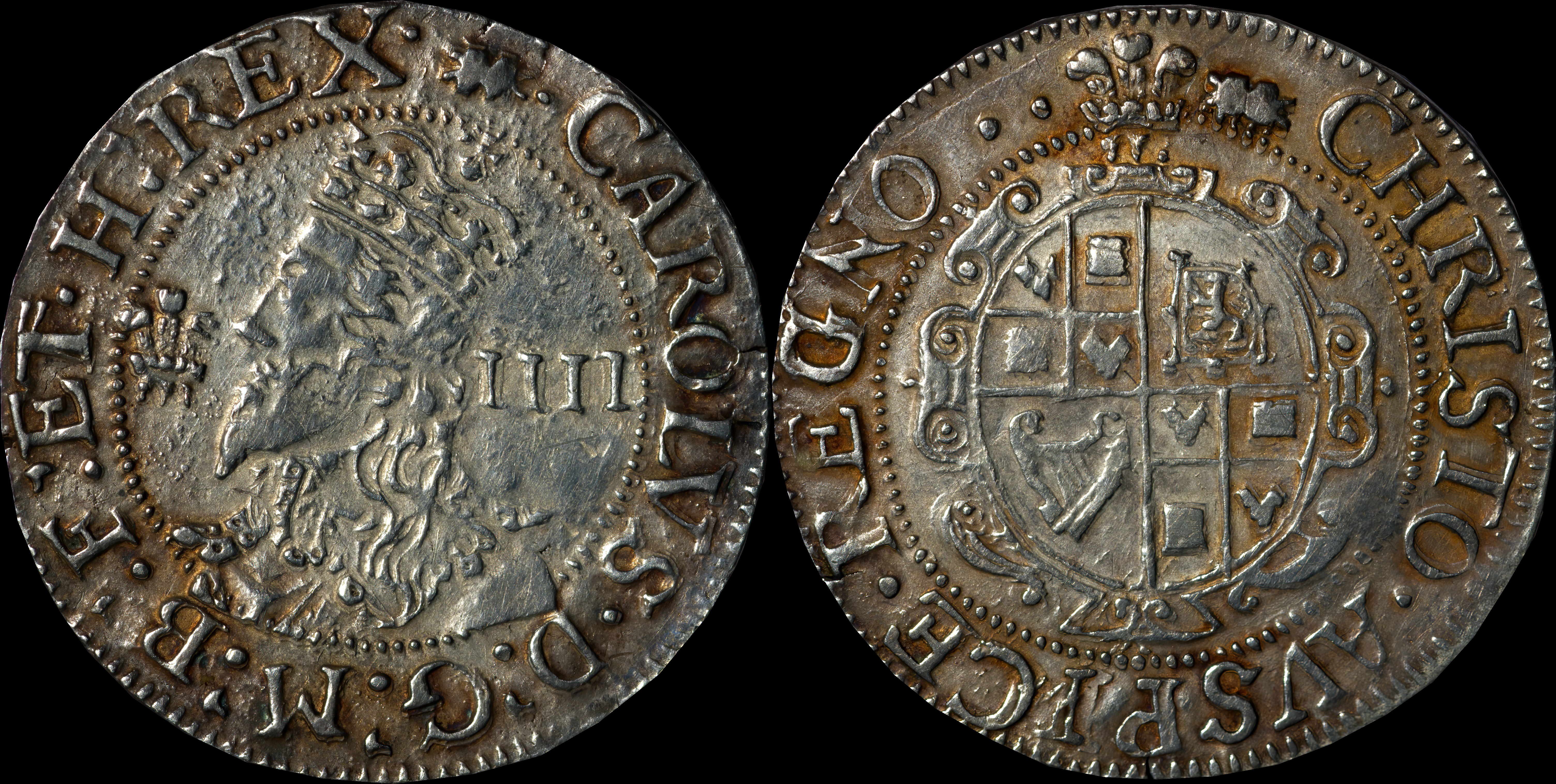 CAROLVS D G MAG BRIT FRA ET HIB REX CHRISTO AVSPICE REGNO |