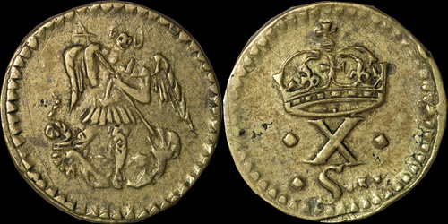| Brooker 258, North 2195, S 2758. Crown mintmark. Ex Earls of Bridgewater (late 1600s). | |