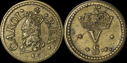 | Bull 469, North 2364, S 2858. Anchor with B mintmark. Briot's second milled issue. | |