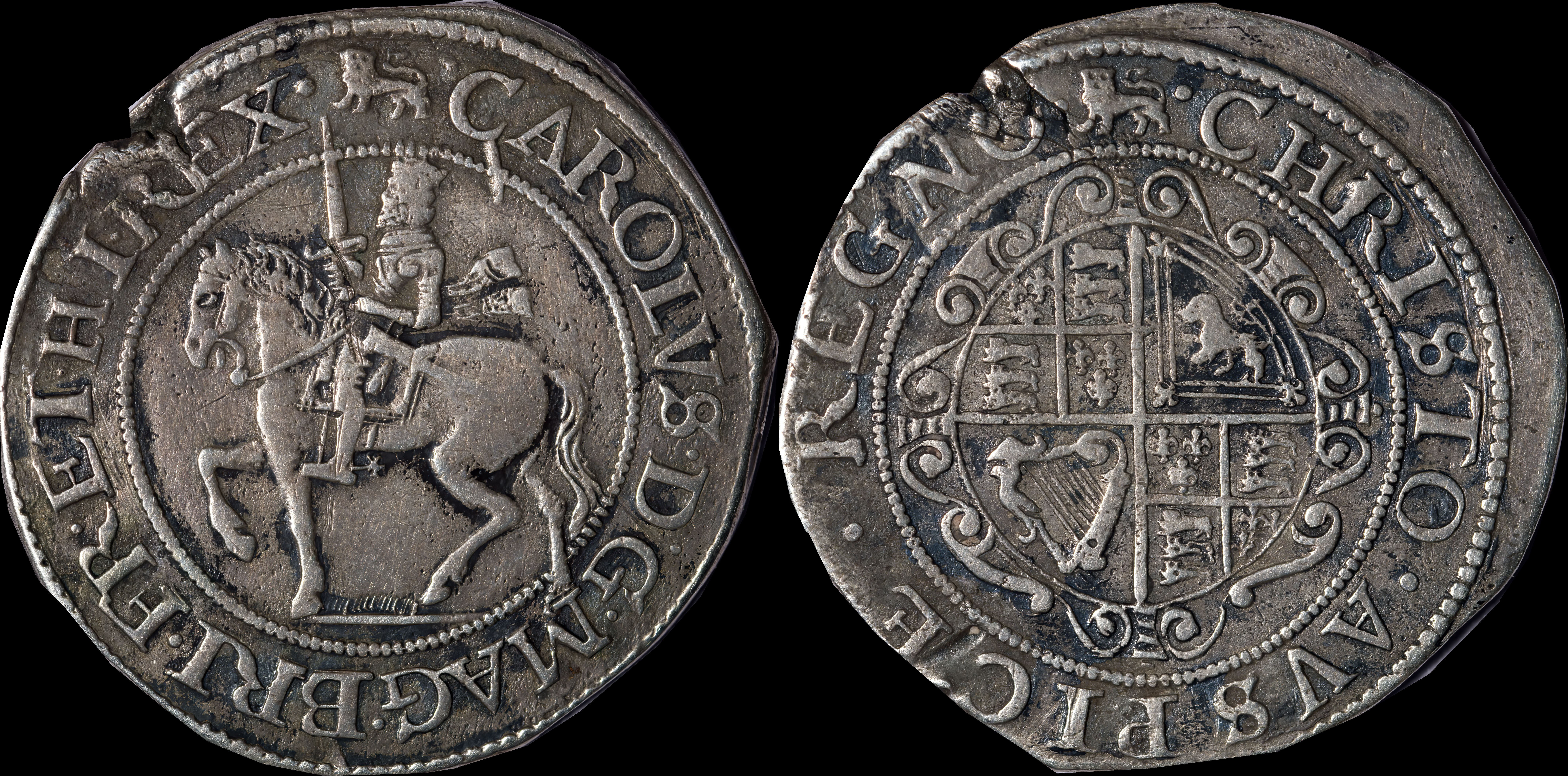 CAROLVS D G MAG BRIT FRAN ET HIB REX CHRISTO AVSPICE REGNO |