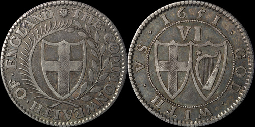Shield of St. George within a wreath. Shield of St. George and Ireland with VI above. |