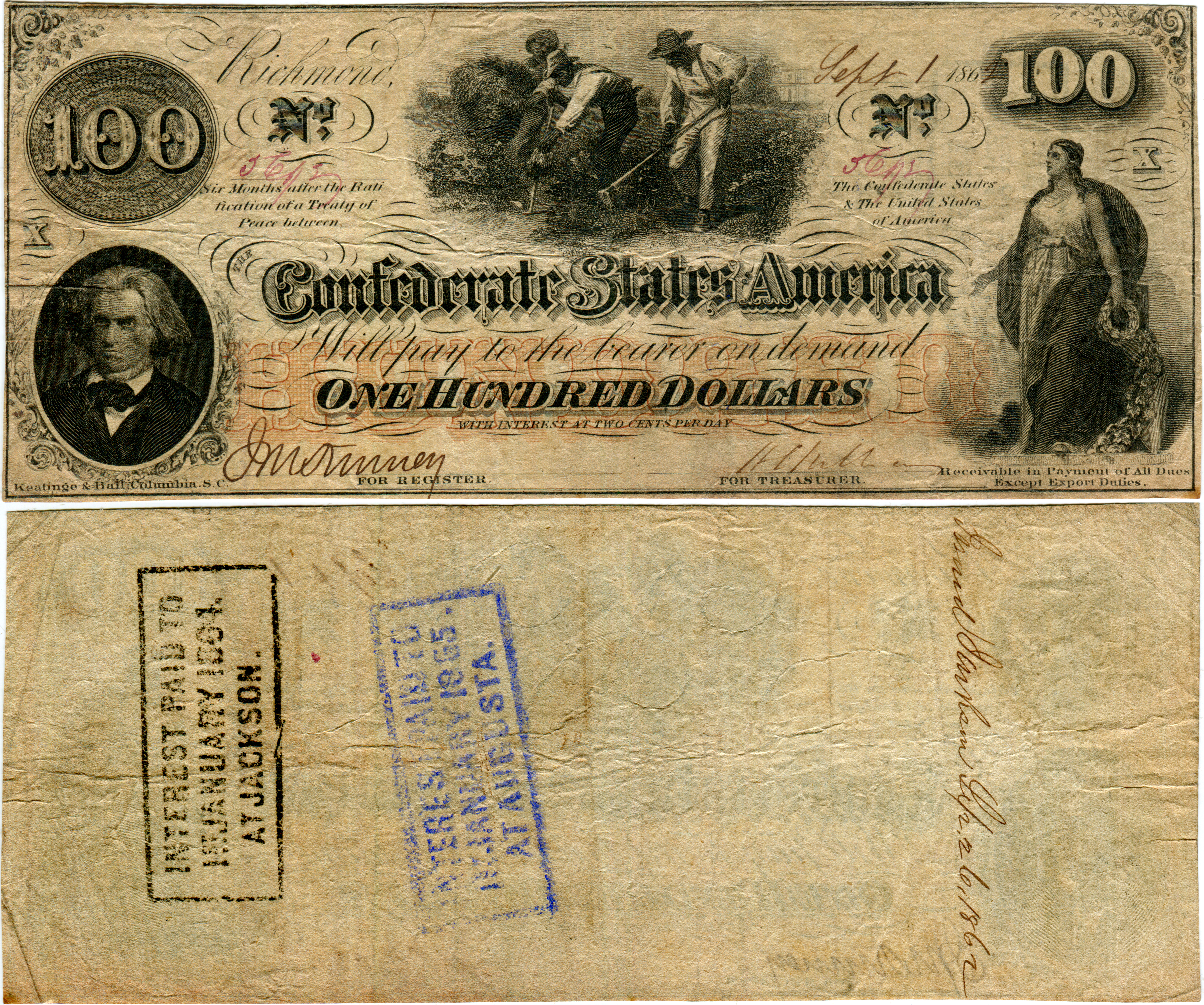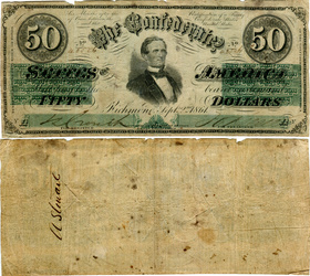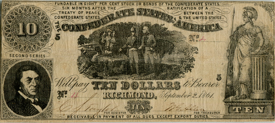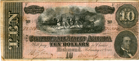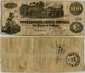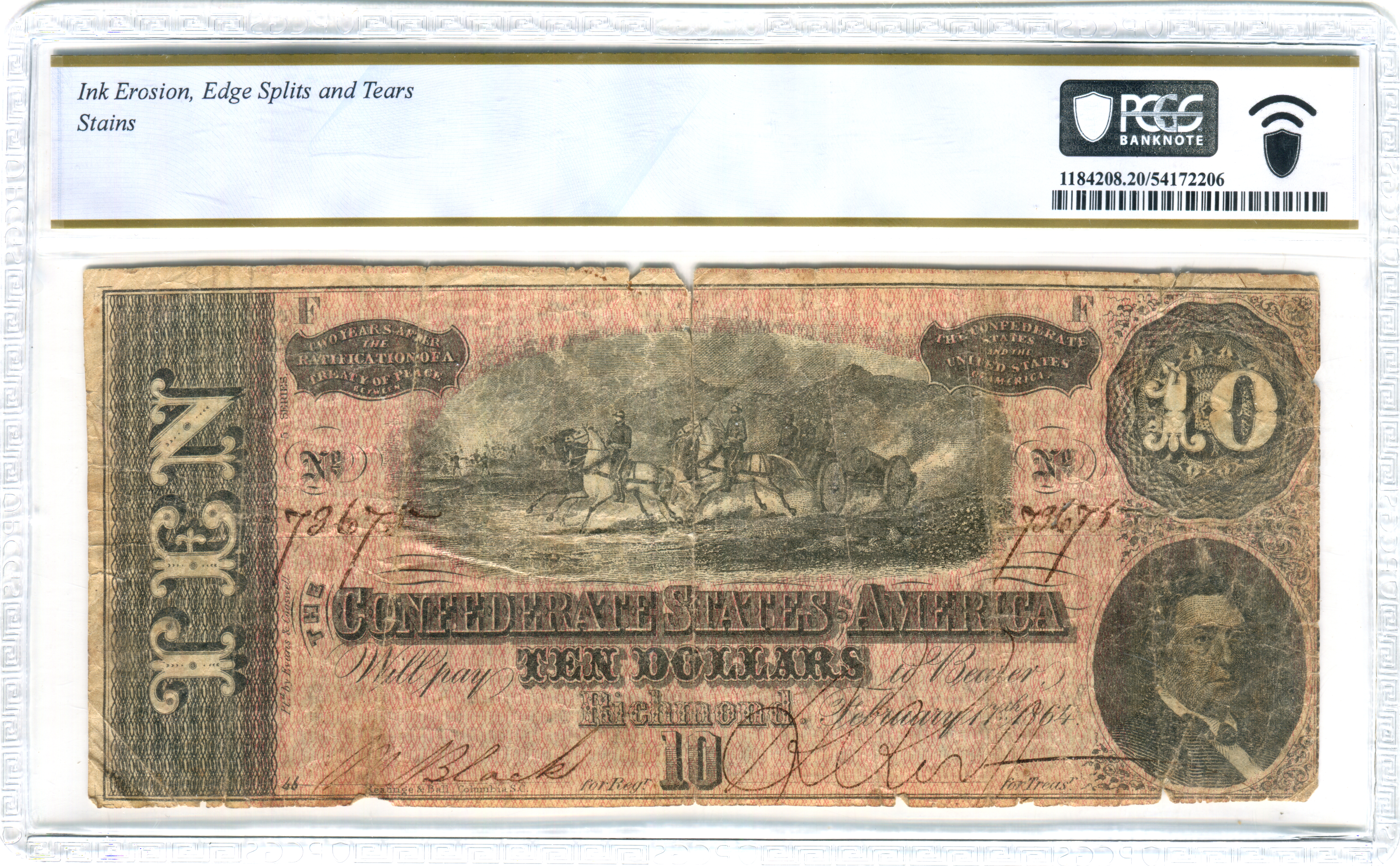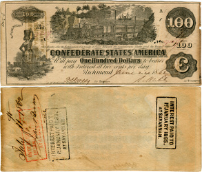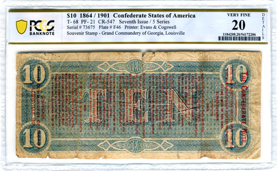T-68, Cr#545, PF-15. Oct 21, 1878 Kennesaw route railroad advertising on a Confederate $10.