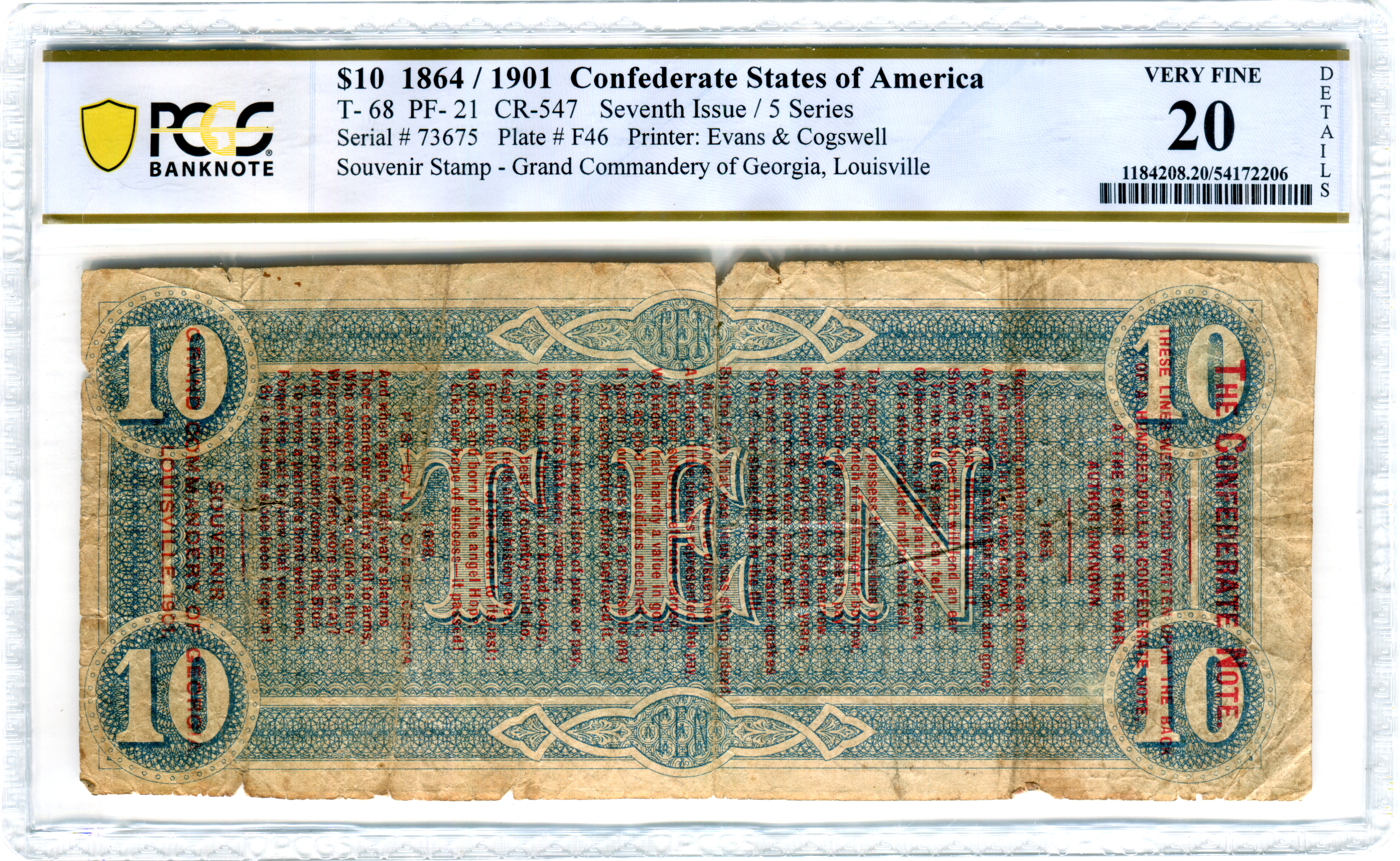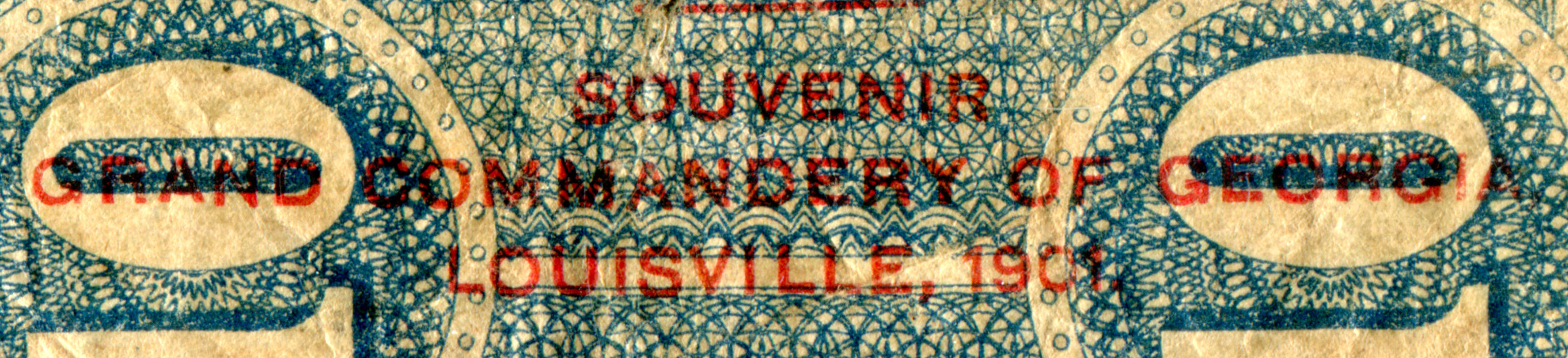 T-68, Cr#547, PF-21. Poem overprinted on a T-68 note. Souvenir of the Grand Commandery of Georgia, Louisville, 1901.
