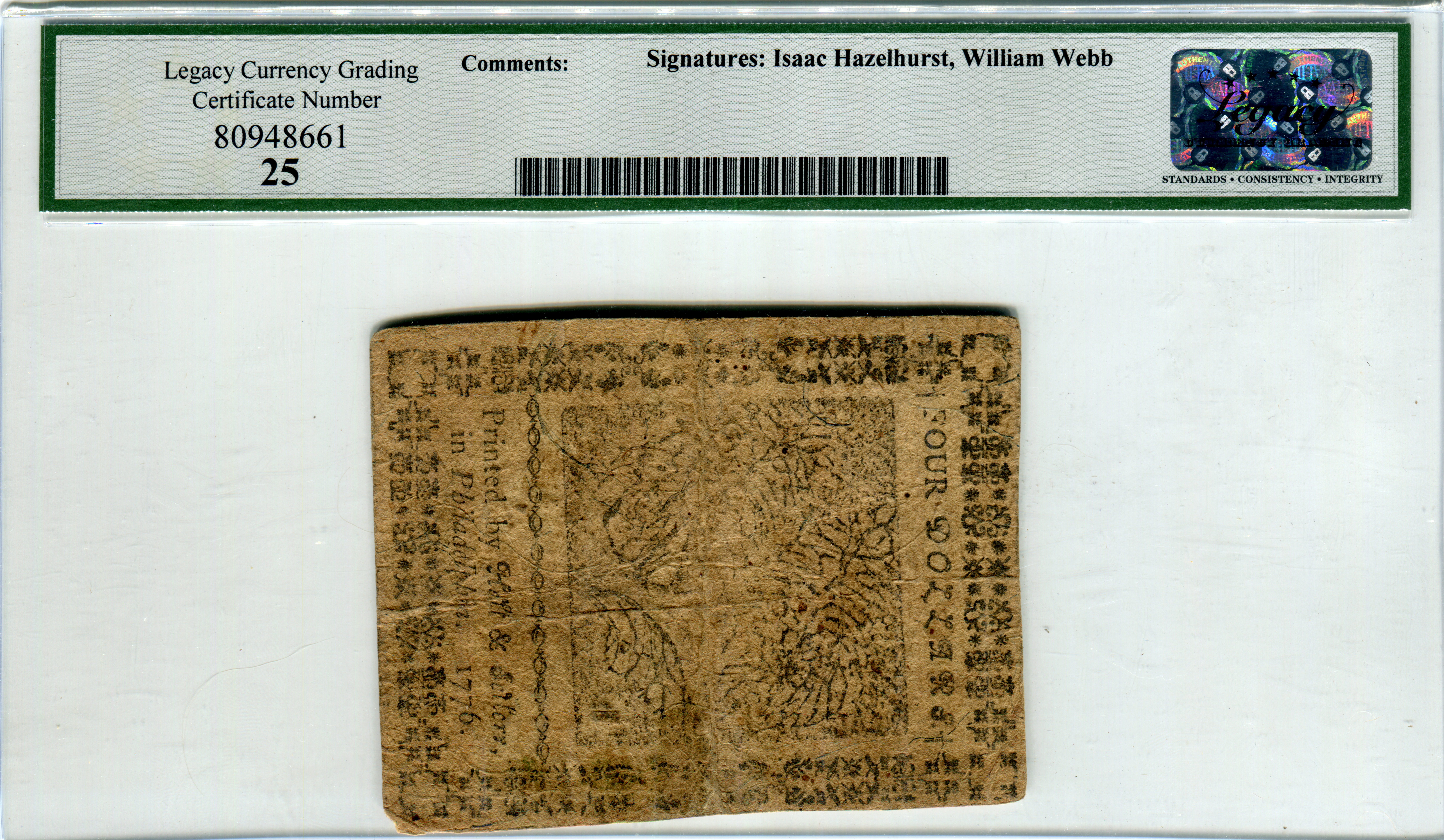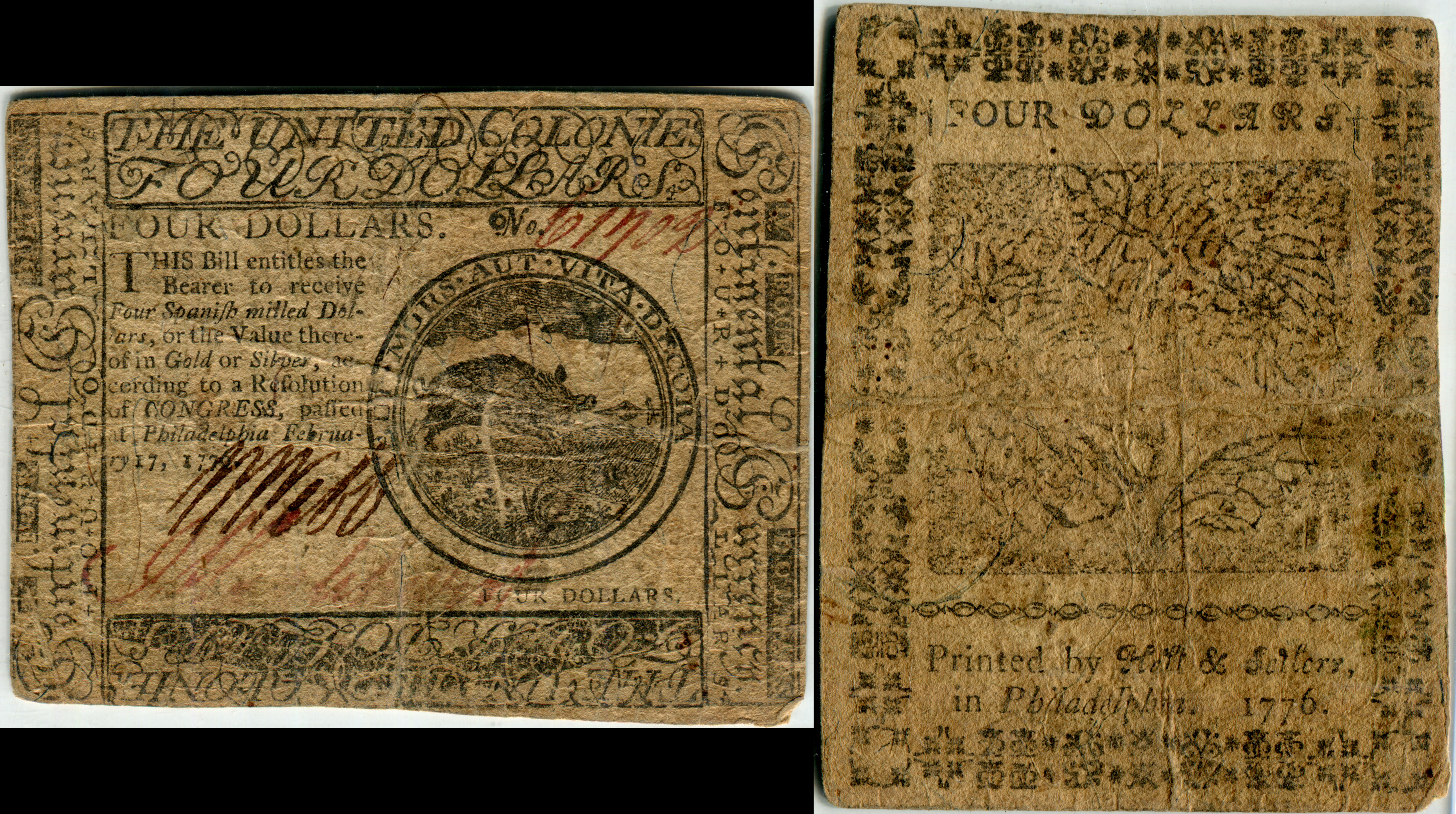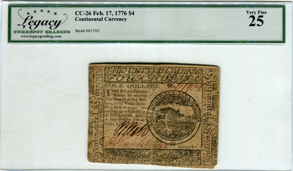 Continental Congress issue. February 17, 1776. 130,435 printed. Signed by William