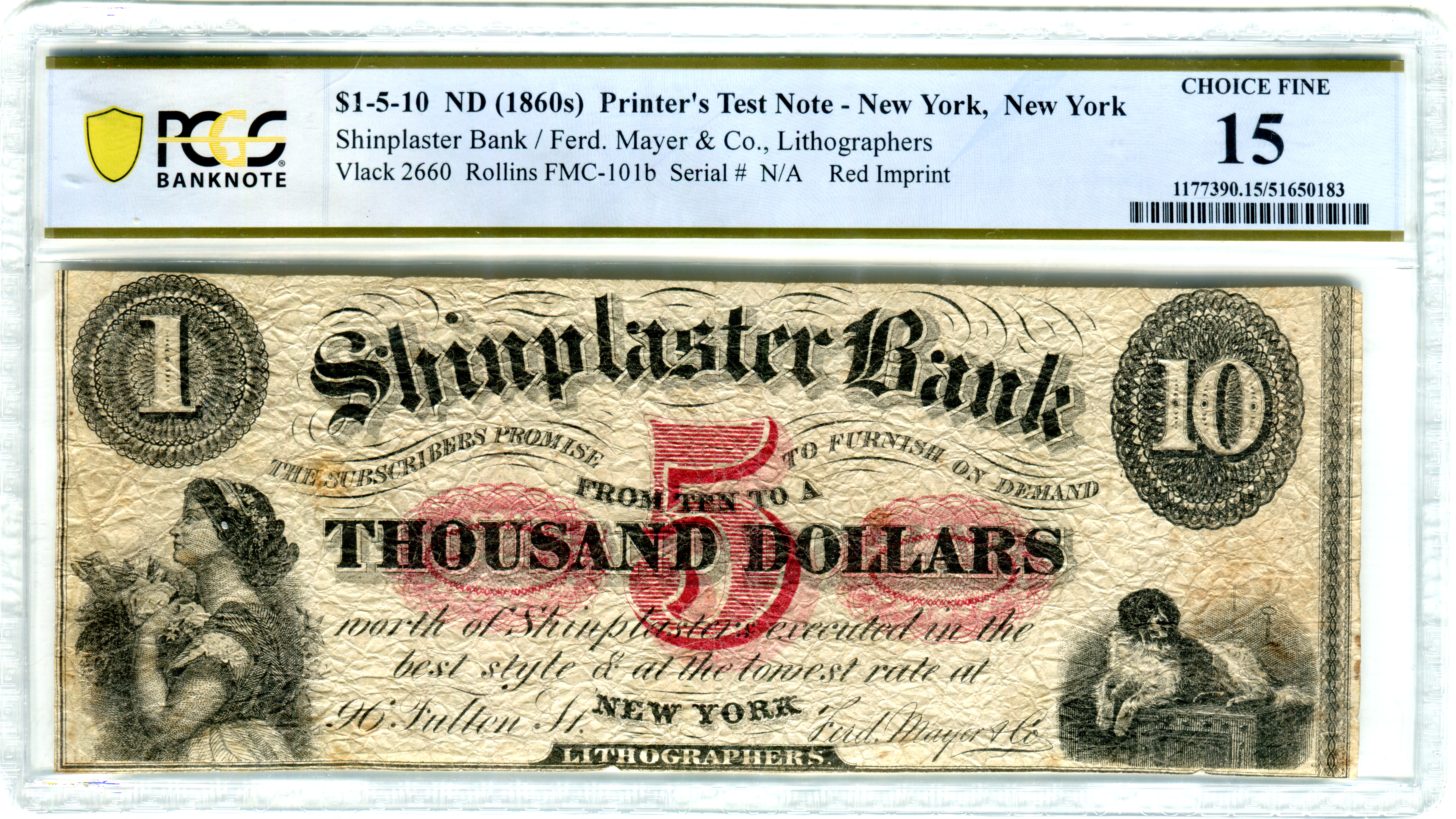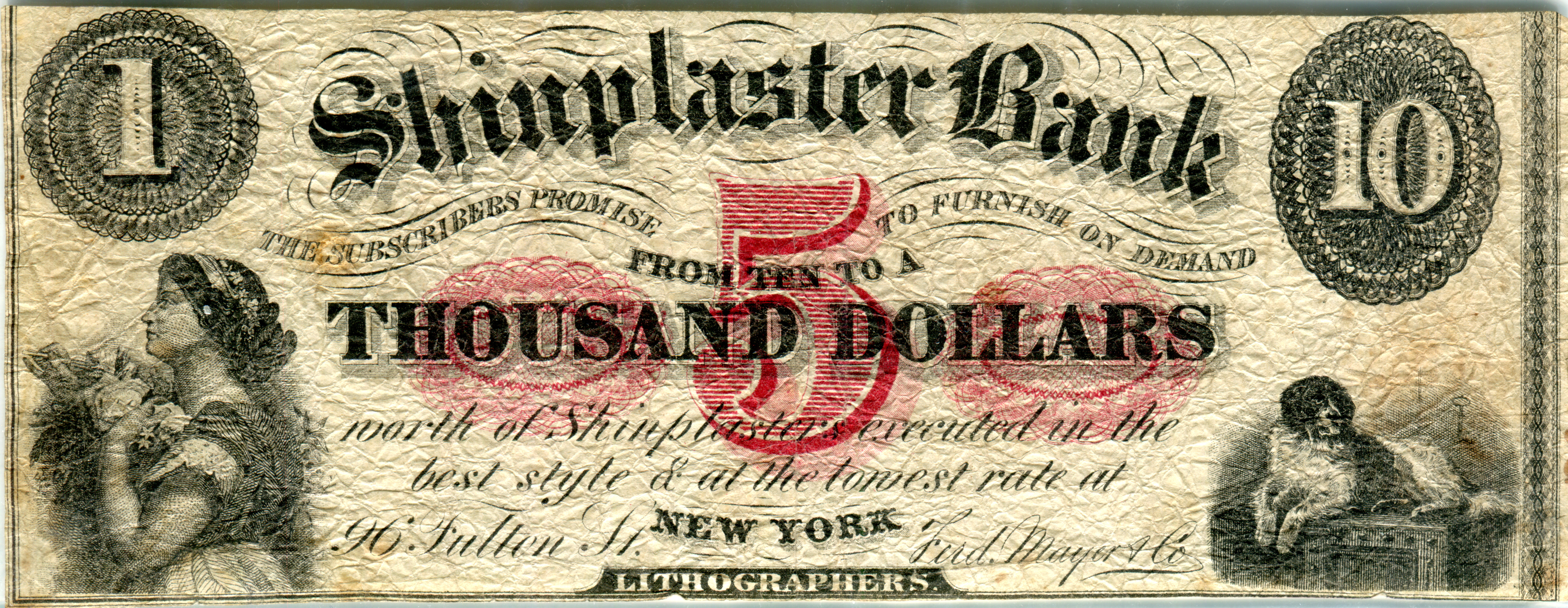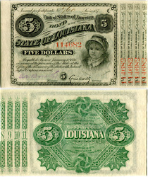 Savannah, Georgia. Mechanics Savings & Loan Assocation $5 note overprinted on uncut $1 notes from the La Grange Bank of La Grange, GA.