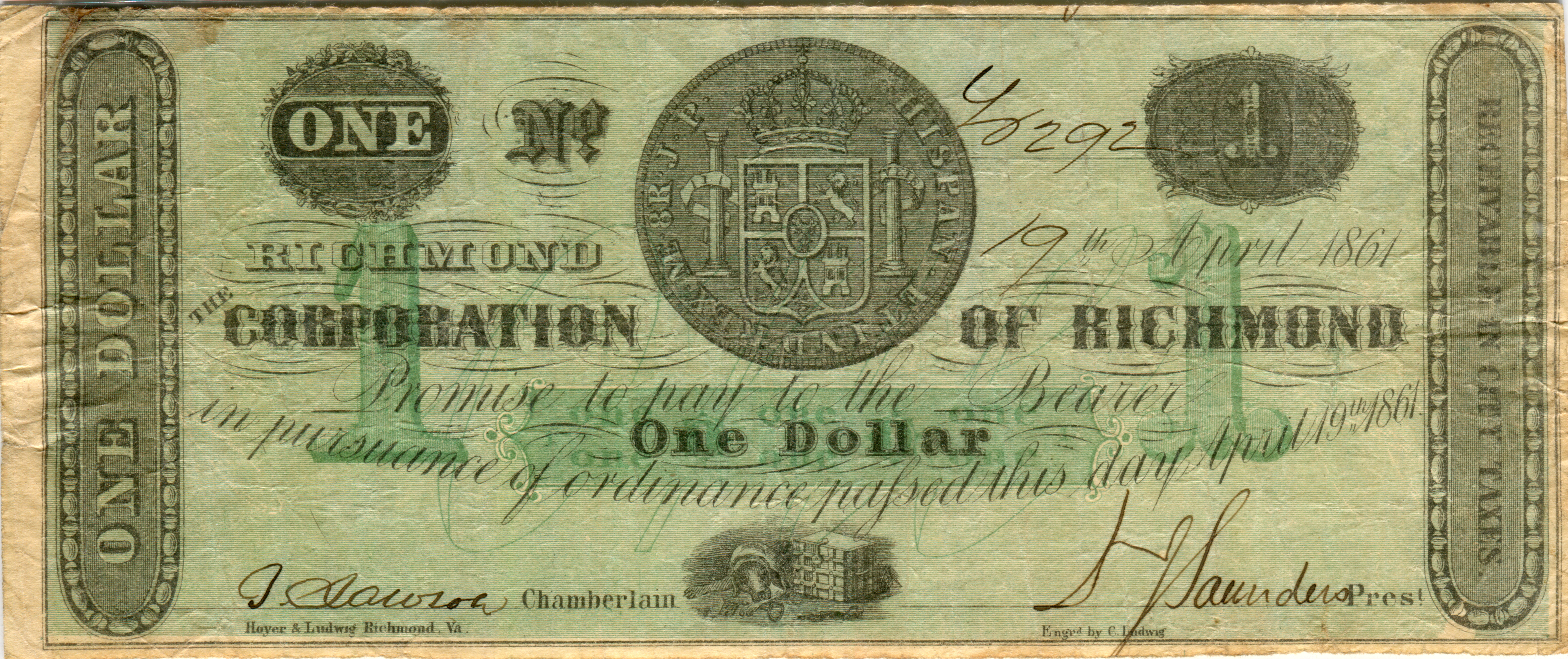 indicates that much of the value was redeemed in gold coin after the Civil War.