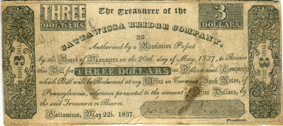 Cattaswissa, Pennsylvania. Cattawissa Bridge Company.