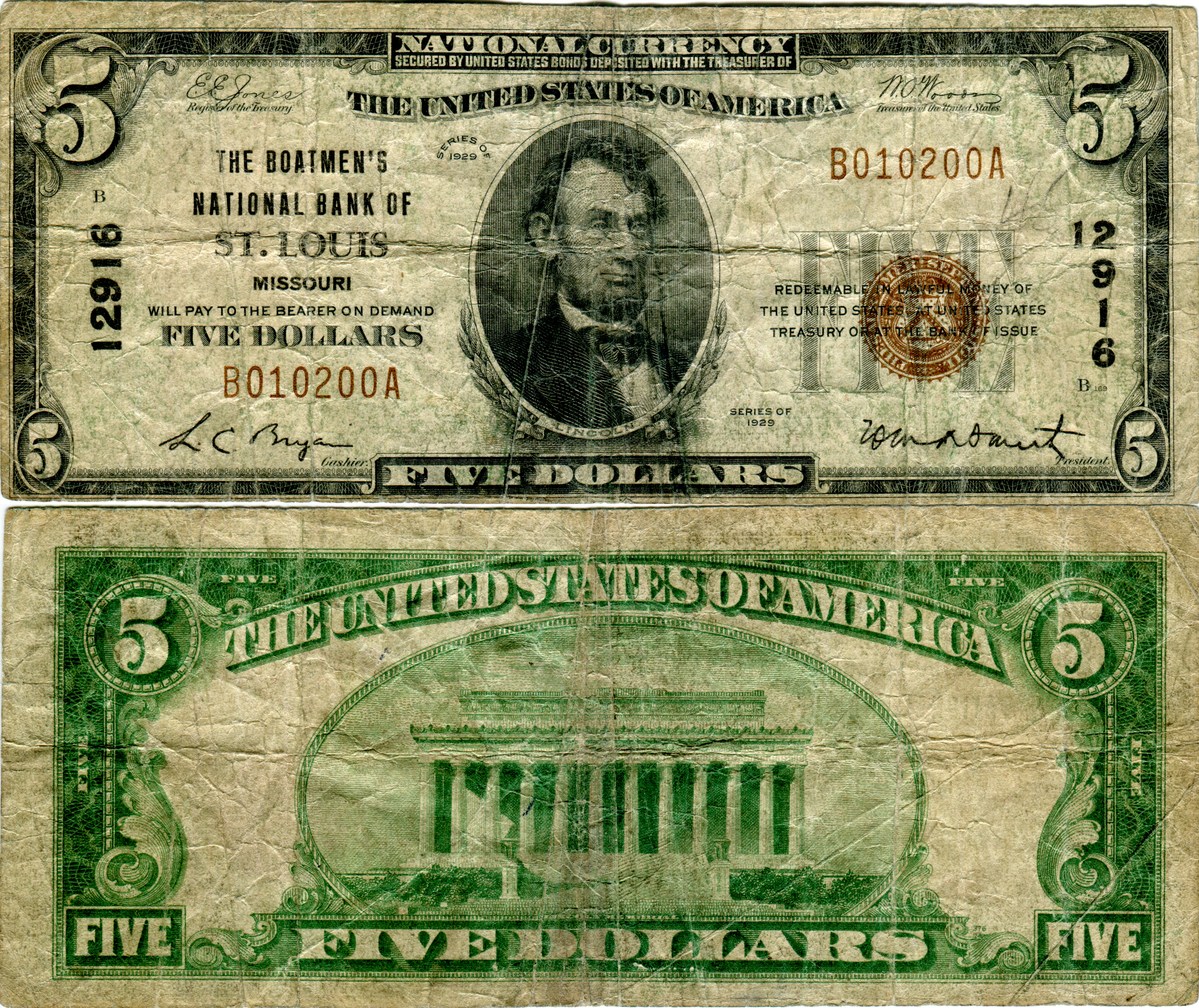 Fr#S-2025 Type 1. The Boatmen's National Bank of St. Louis.