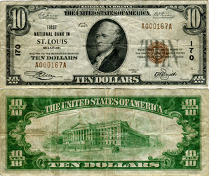Fr#S-2076 Type 1. First National Bank in St. Louis. Low serial number.