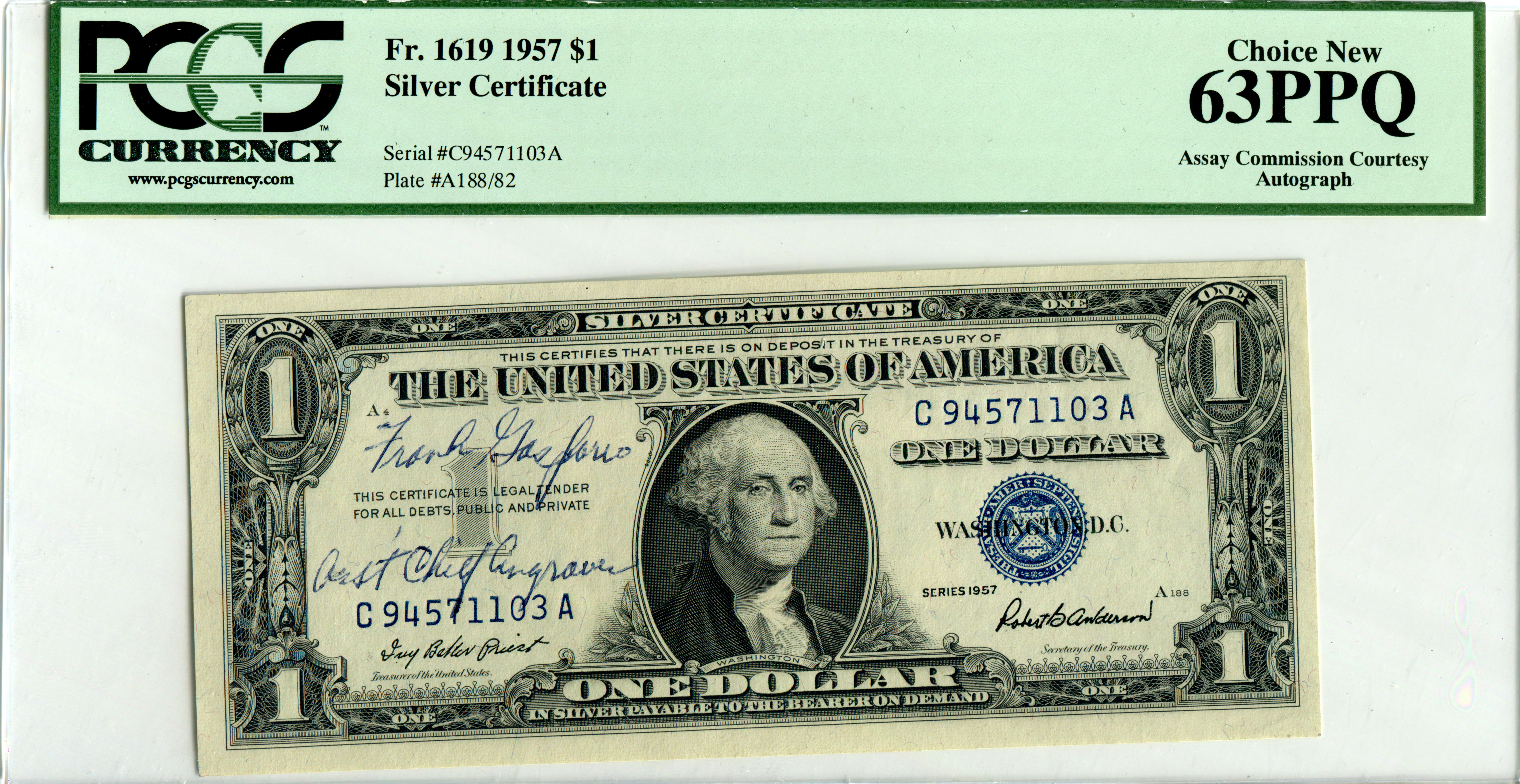 Fr#1619. Priest/Anderson. Signed by (then assistant) Chief Engraver Frank Gasparro (1962-65).