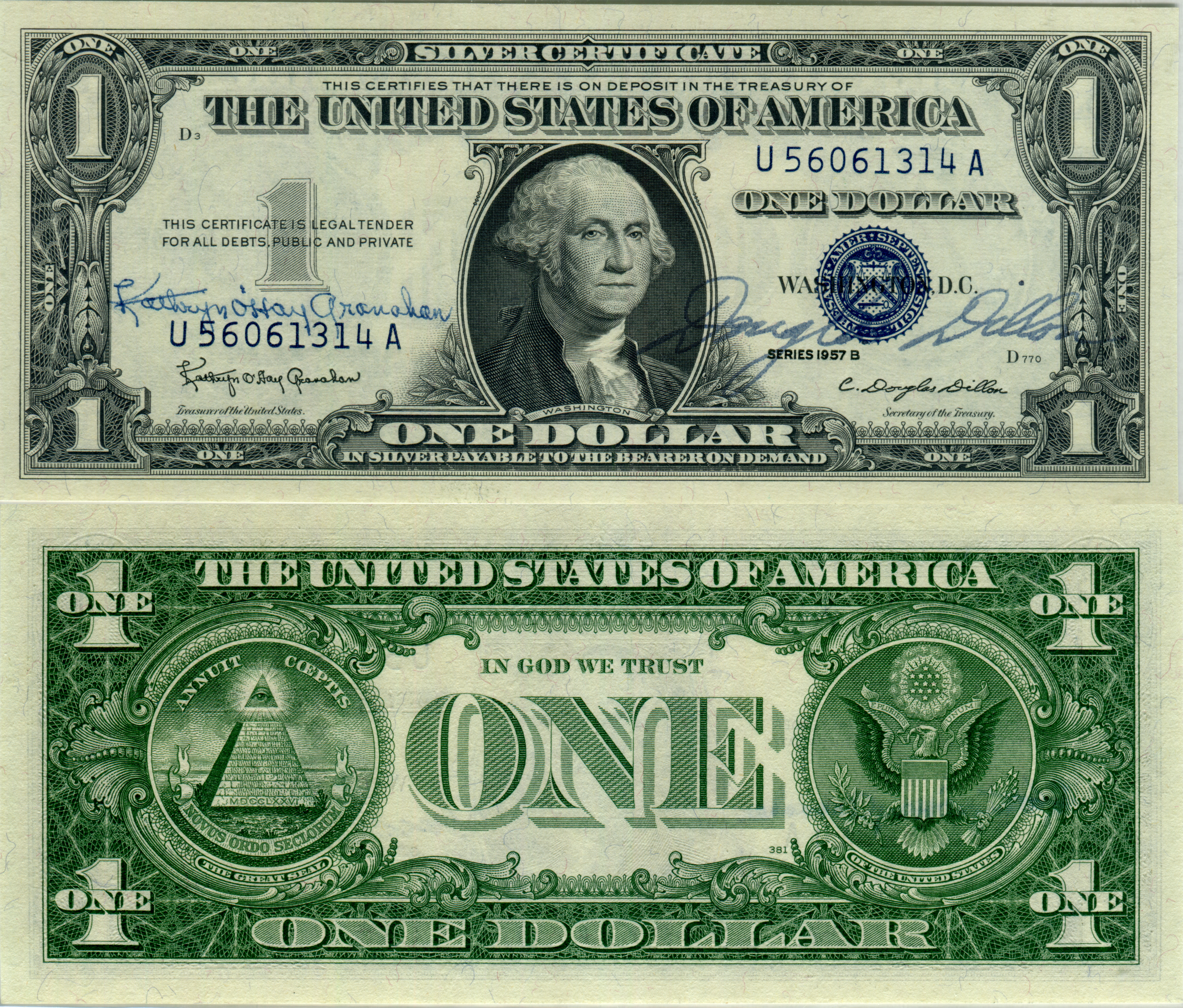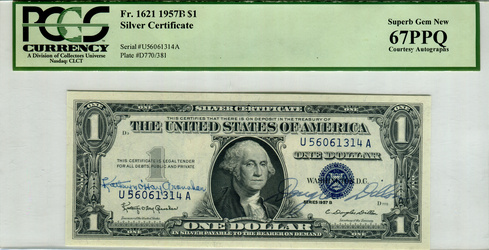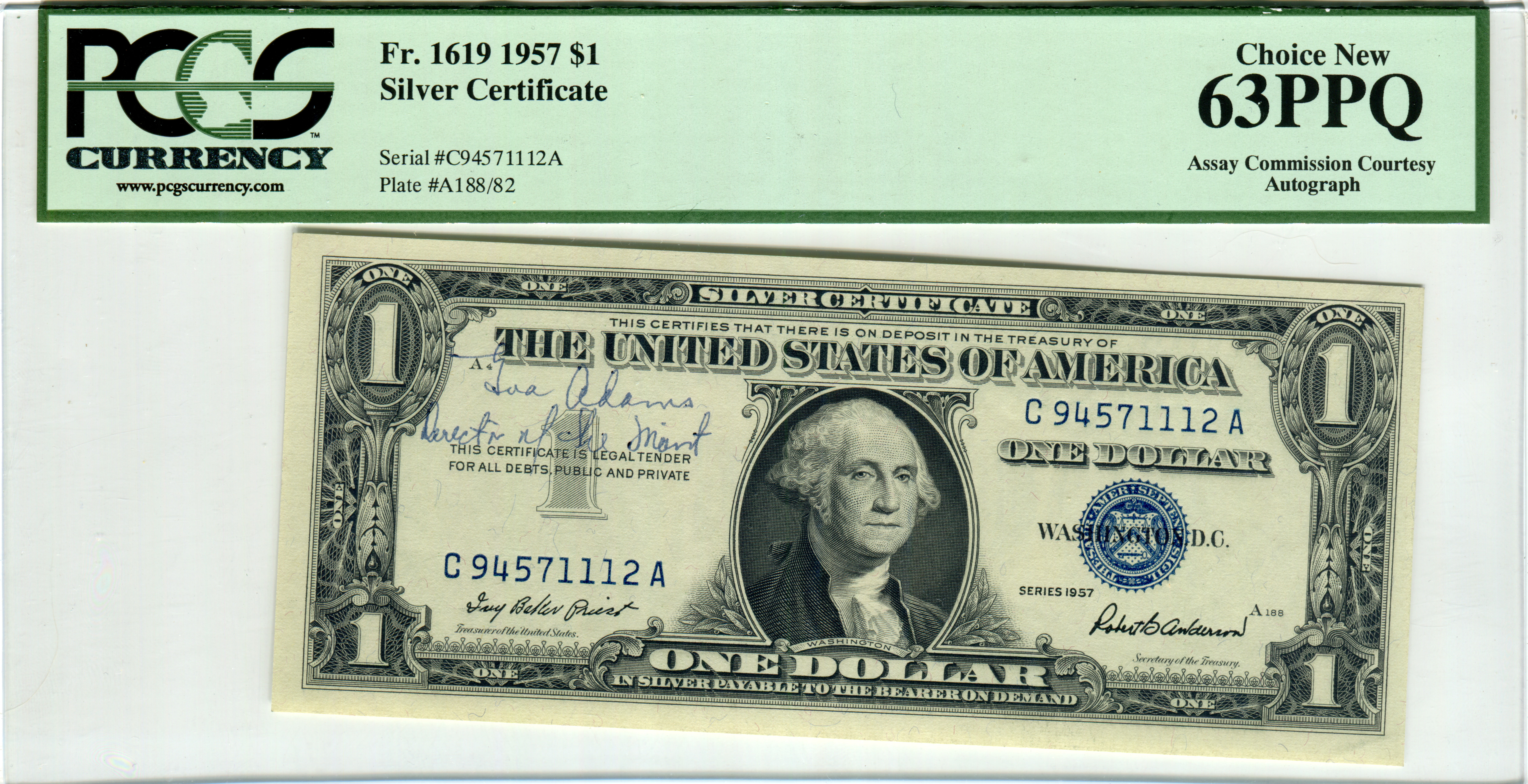 Fr#1619. Priest/Anderson. Signed by Eva Adams, mint director (1961-69).