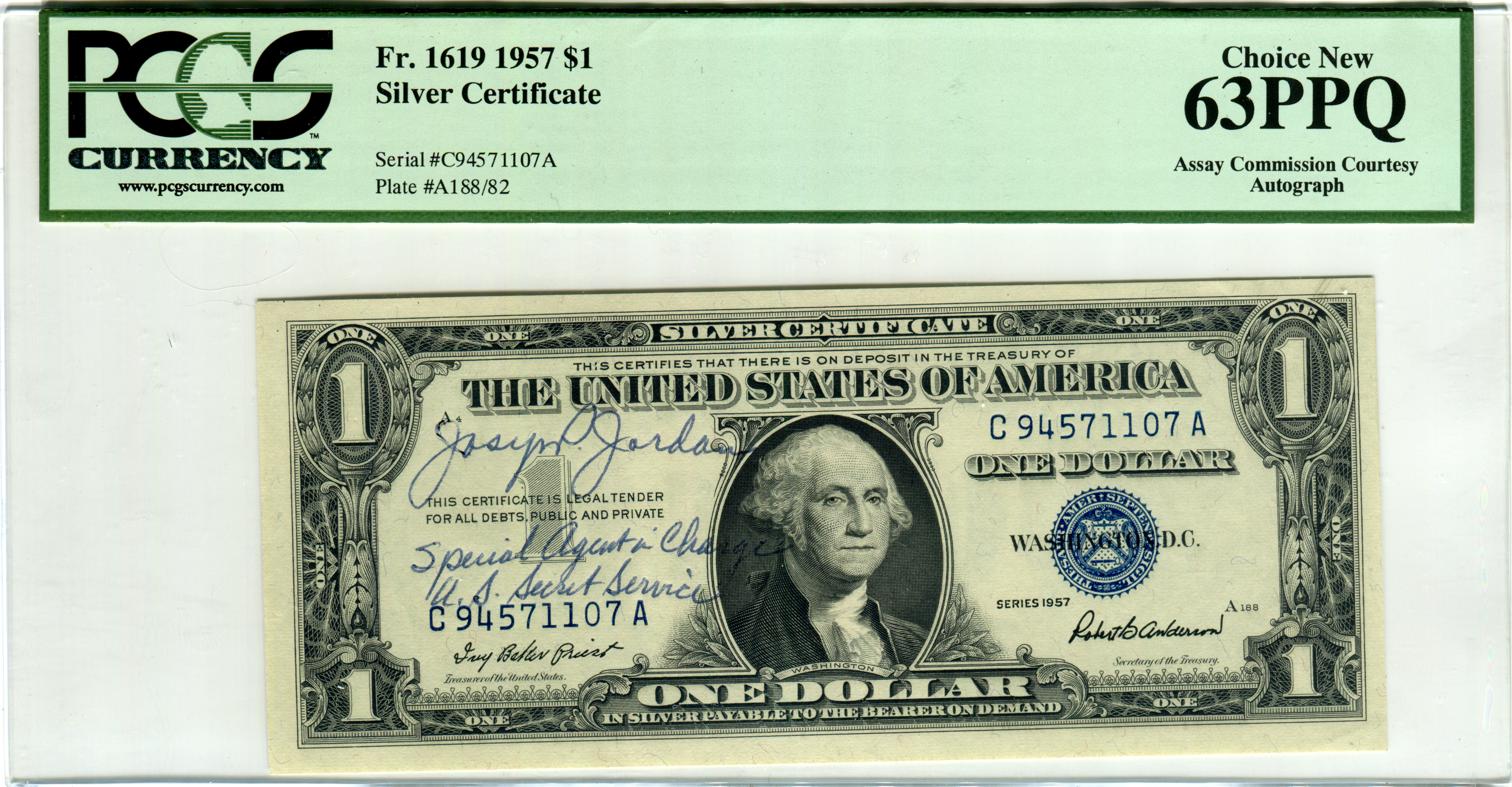 Fr#1619. Priest/Anderson. Signed by Jordan, a Secret Service agent.