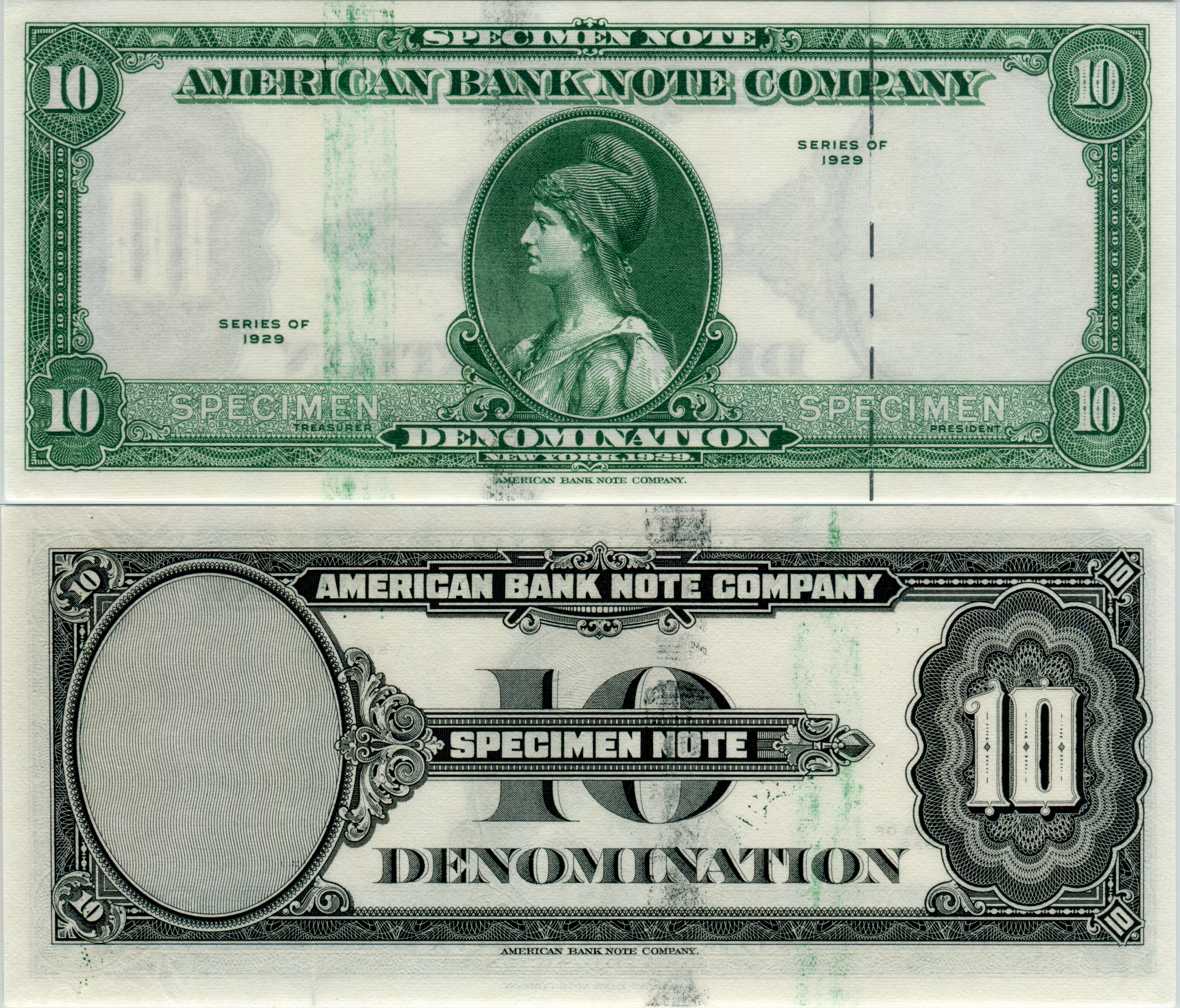 Green / green, Washington center, no serial number, no watermark, uniface uncut pair. ex Pigman hoard.