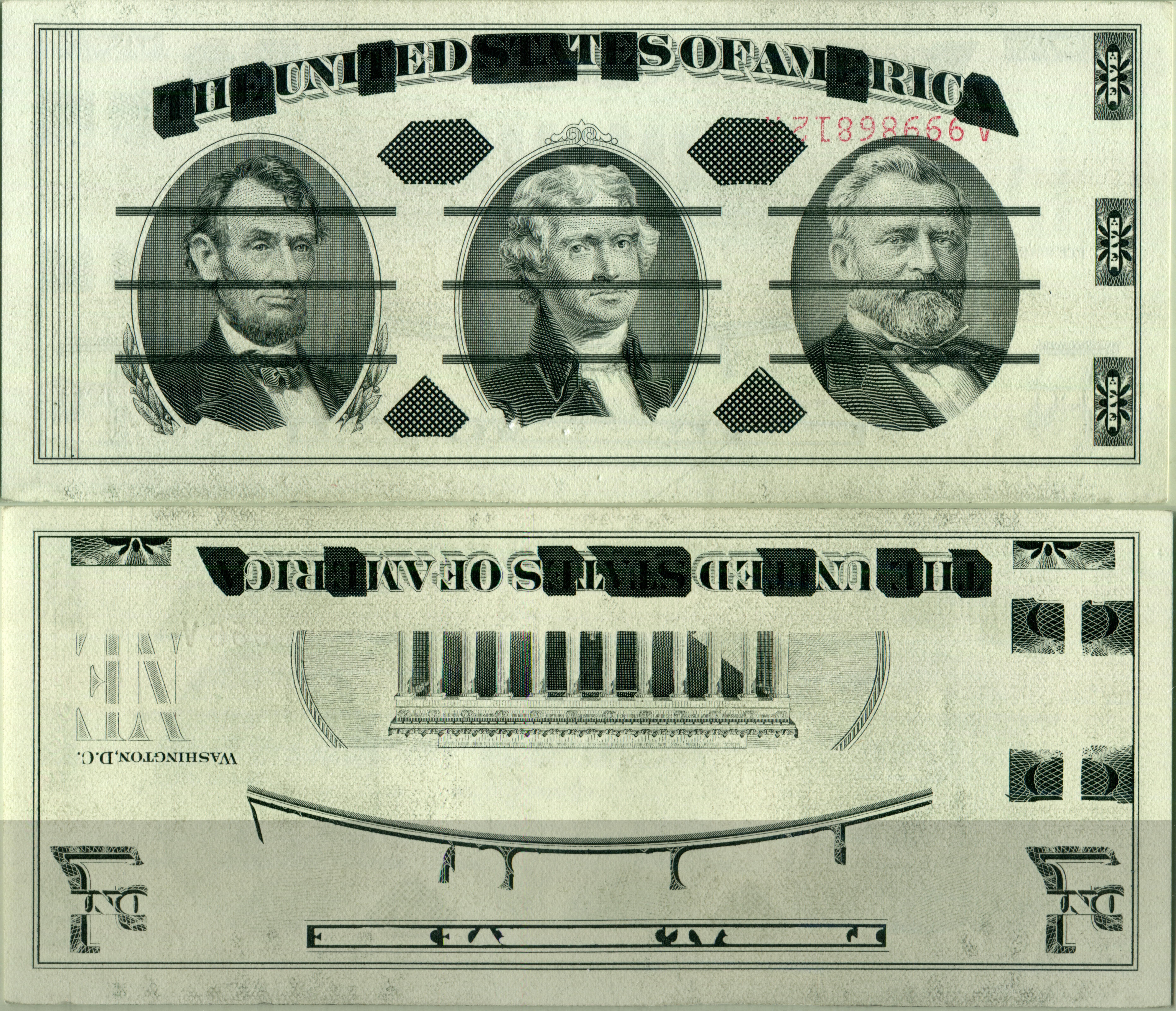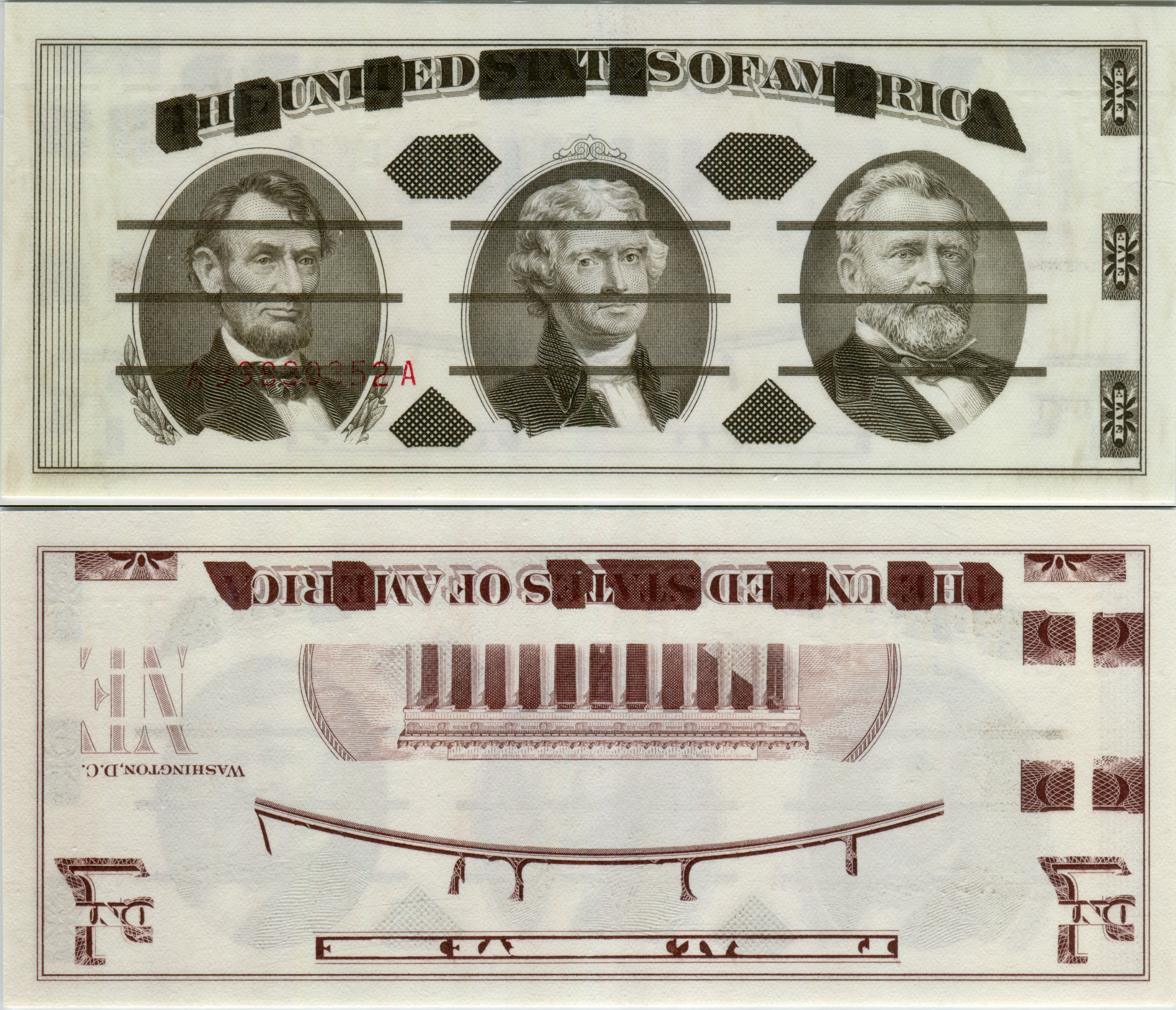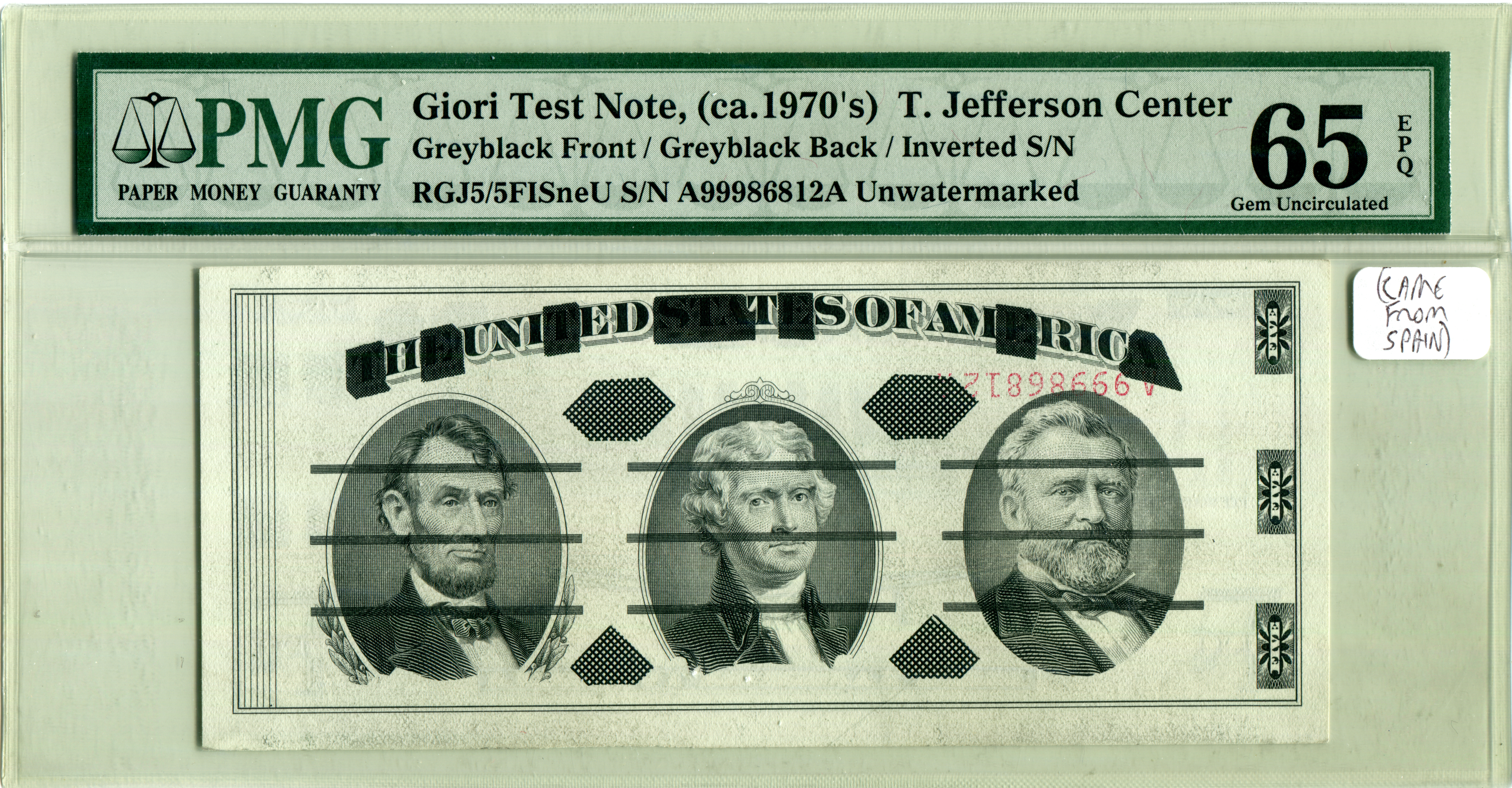 RGJ5/5FISneU. Greyblack / Greyblack, Jefferson center, inverted serial number, no watermark.