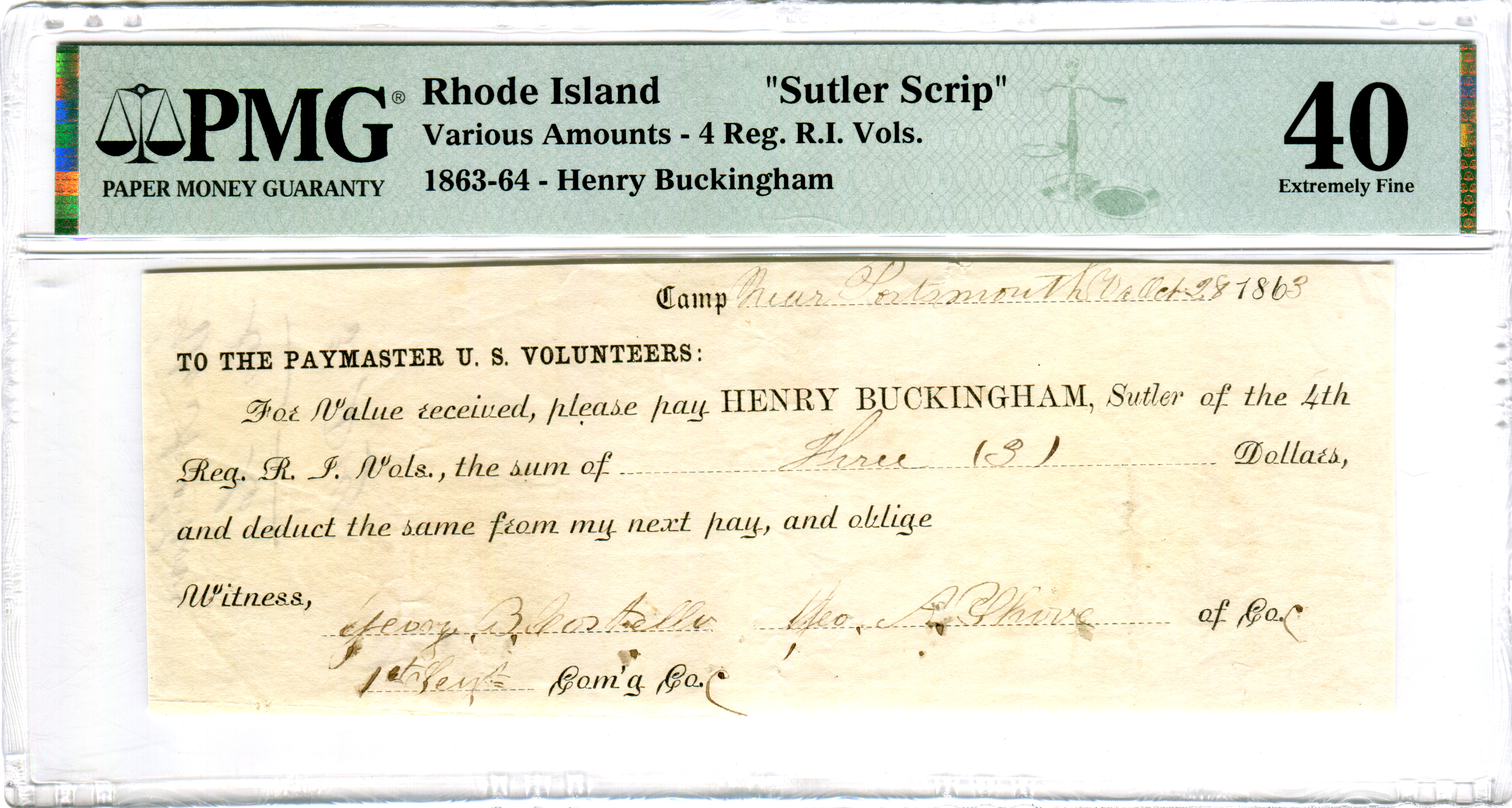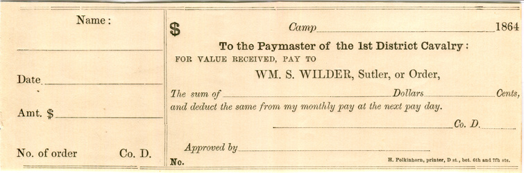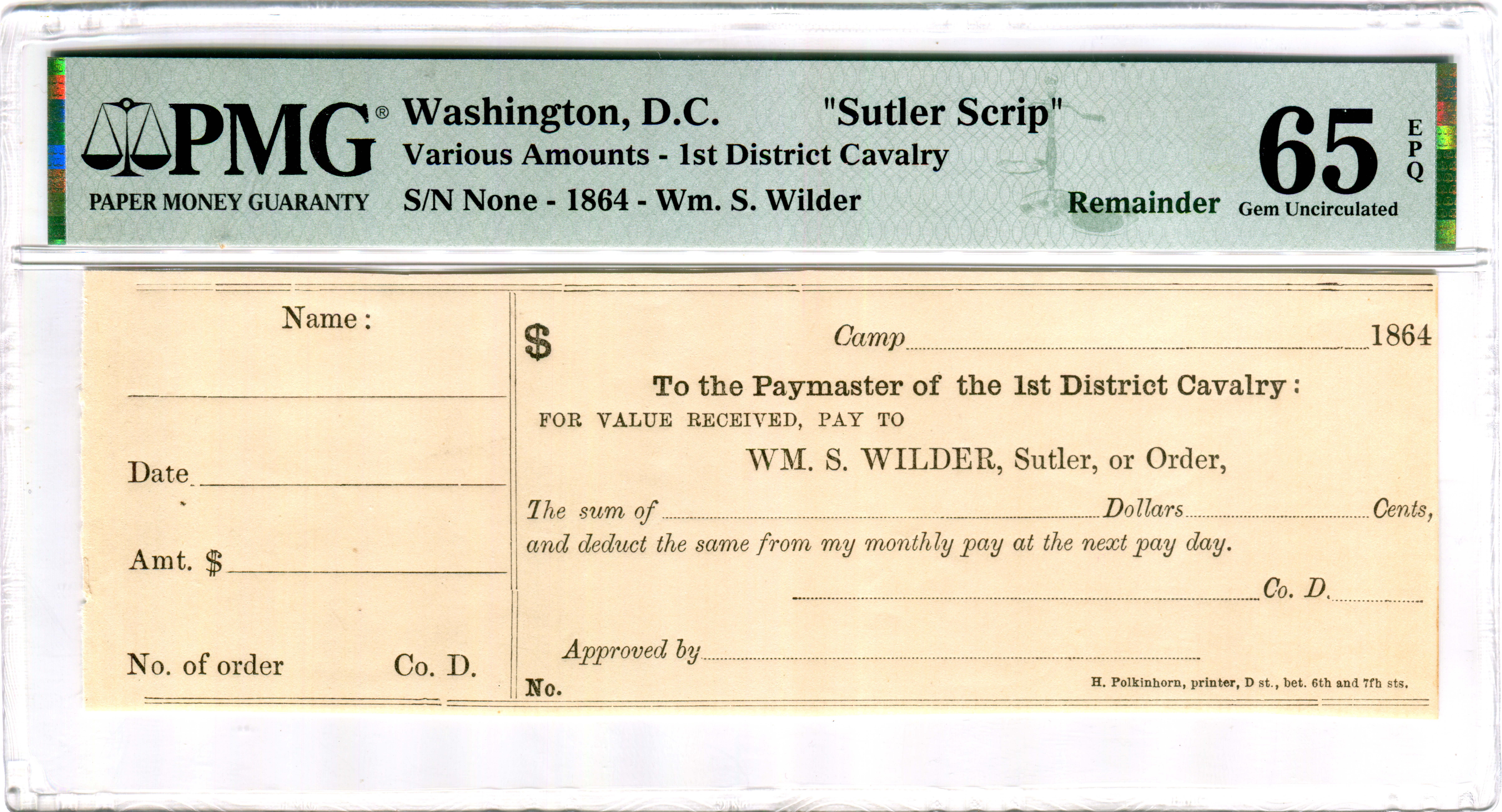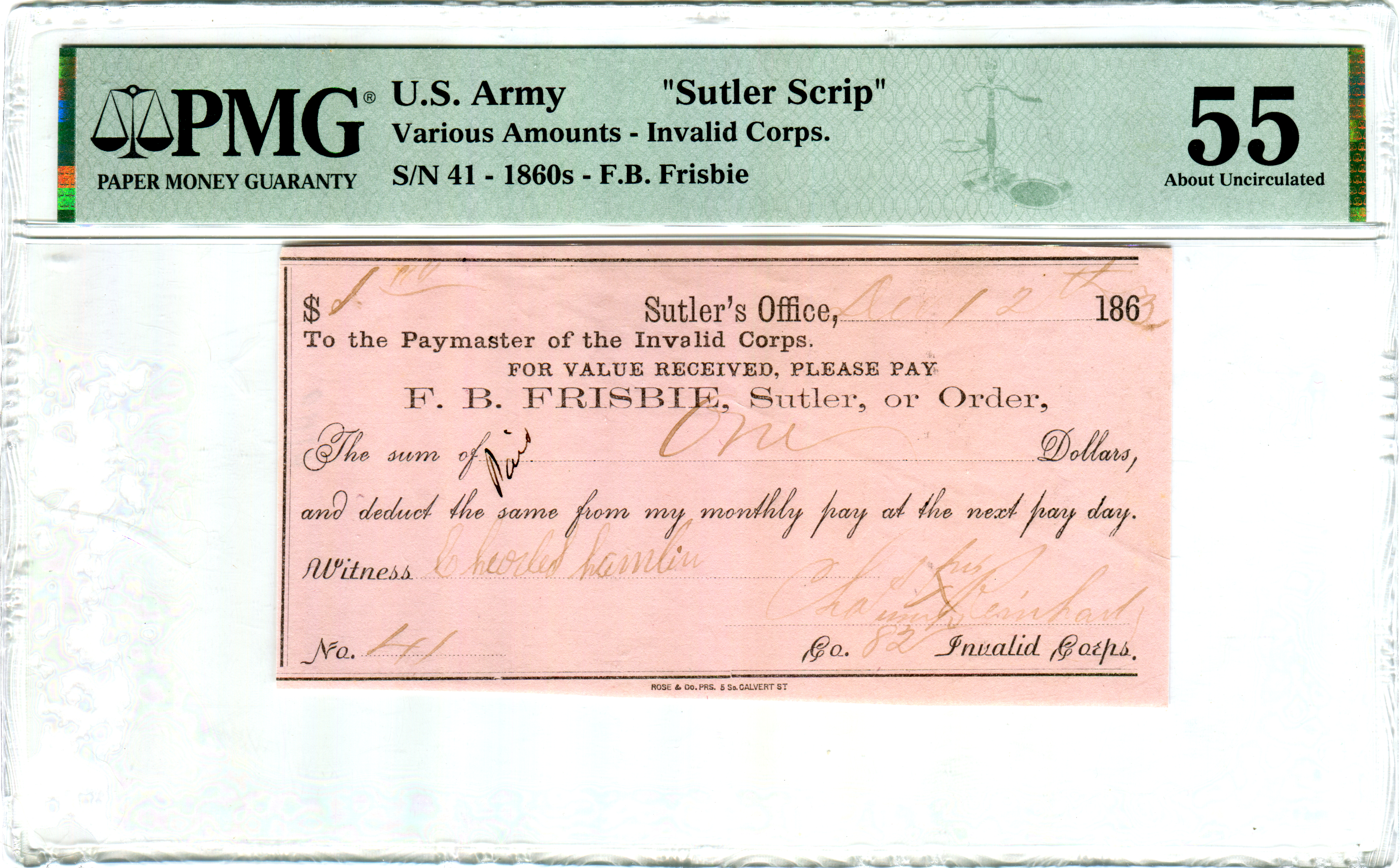 M.S. Williamson, Camp Anderson Michigan 29th Regiment. Serial number 1 and plate note in Keller.