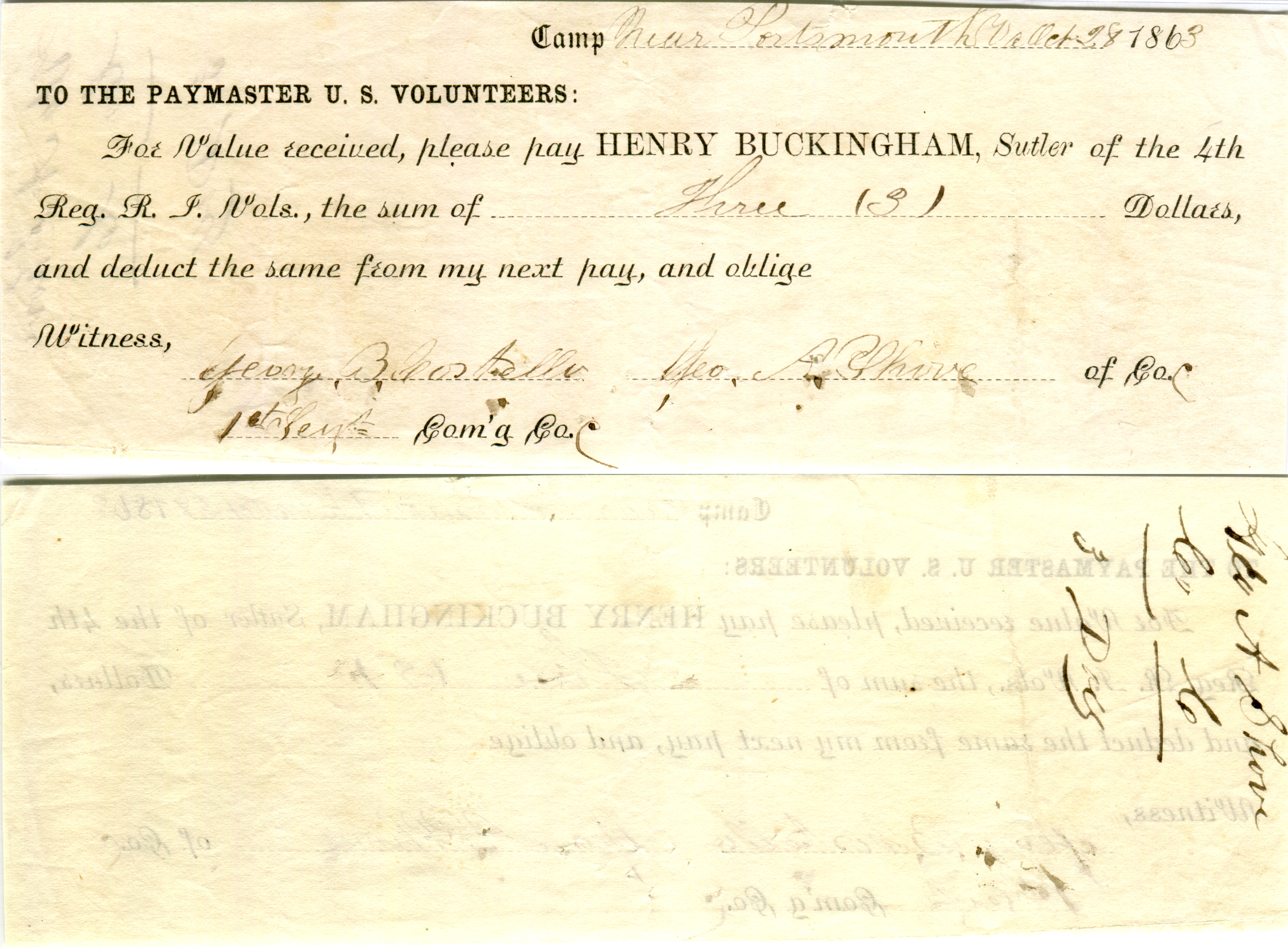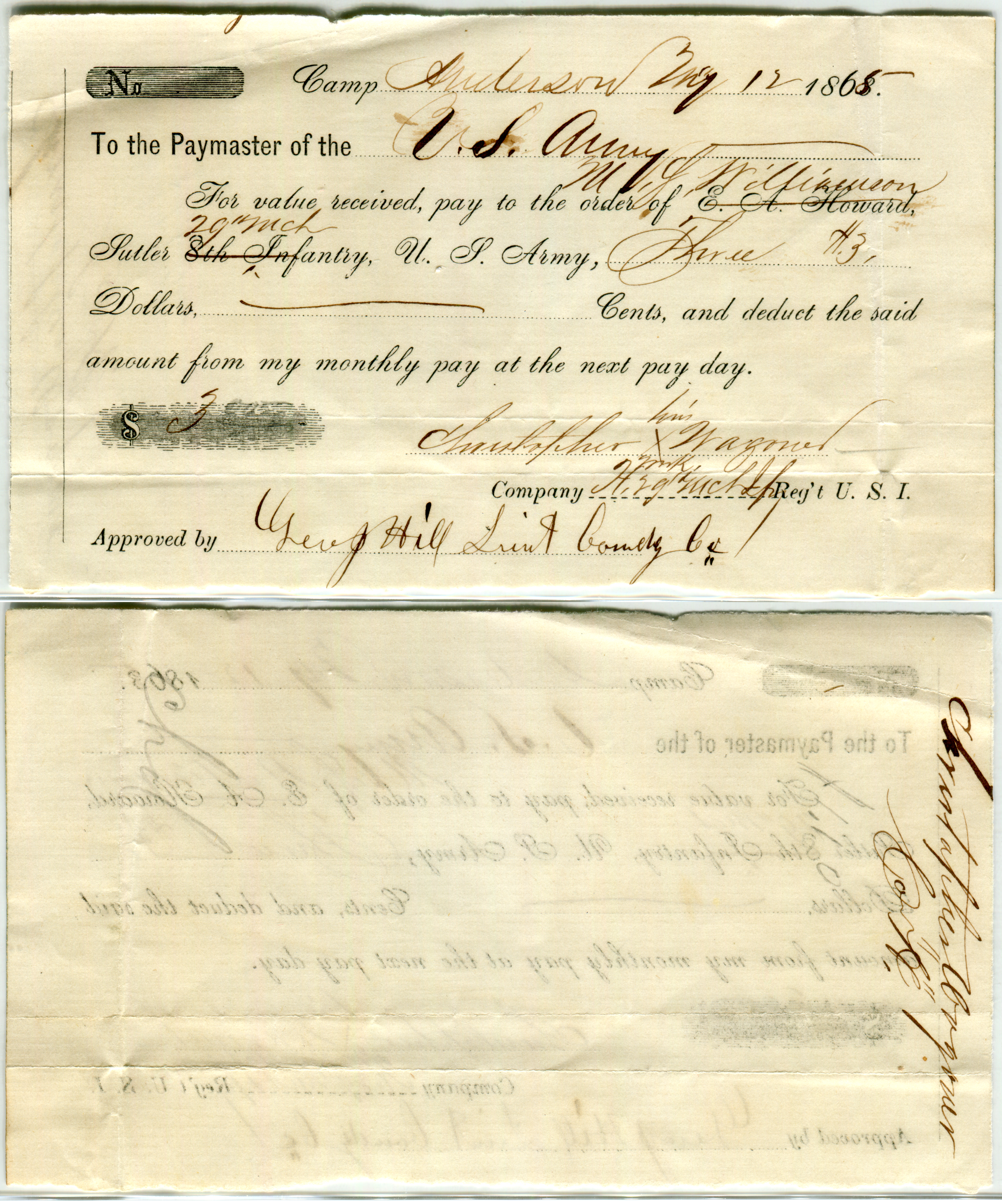 M.S. Williamson, Camp Anderson Michigan 29th Regiment.