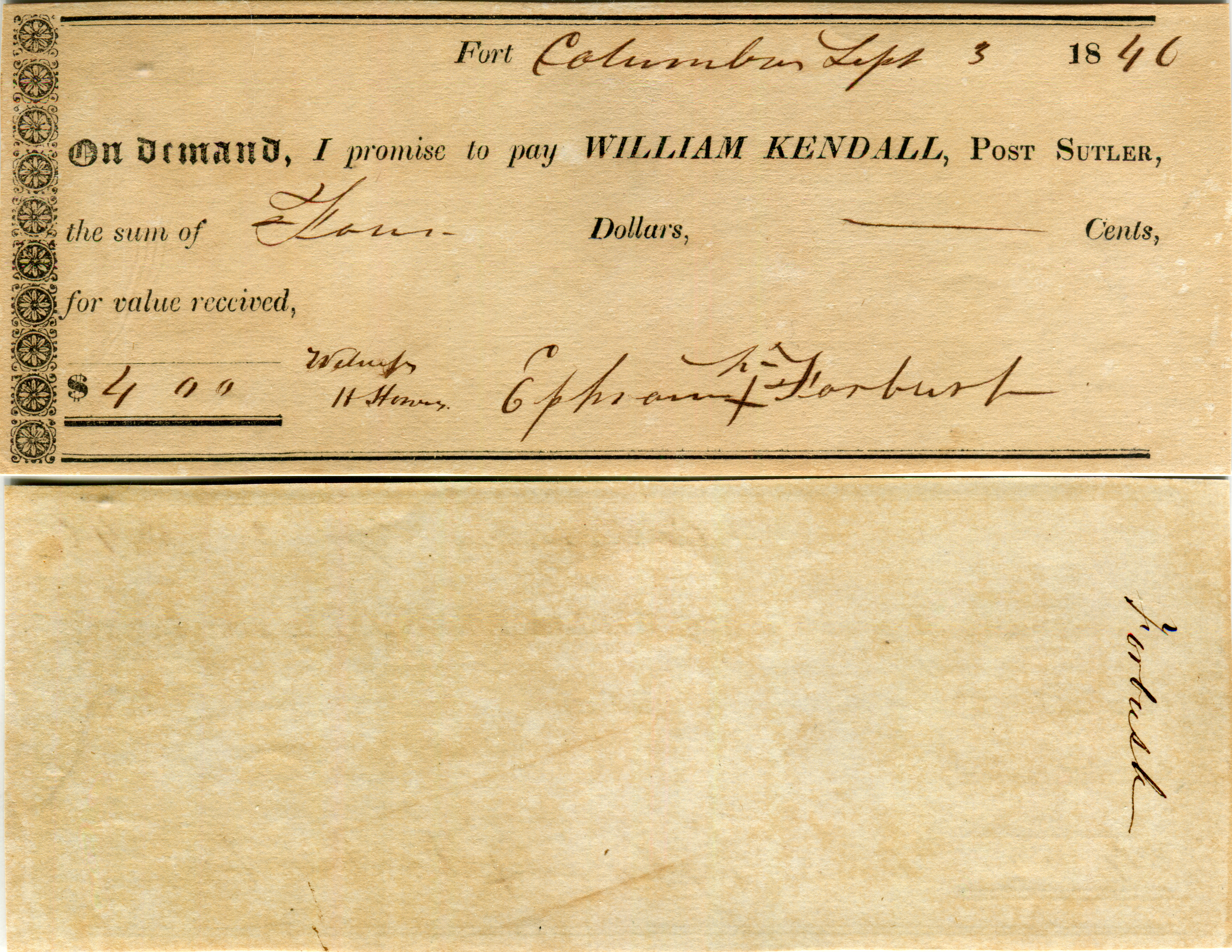 William Kendall, Fort Columbus, Governors Island, New York.