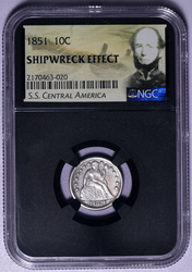 On September 9, 1857 the S.S. Central America was caught up in a Category 2 hurricane while off the coast of the Carolinas and sank 200 miles off the coast on September 12. It was carrying 30,000 pounds of gold from the California gold rush leaving the port of Colón in Panama for New York City. The wreck was discovered in 1988. While coins and such were in the main cargo, the double pinches of California Gold Rush gold come directly from the purser's safe and were recovered in 2014. [1] [2]
