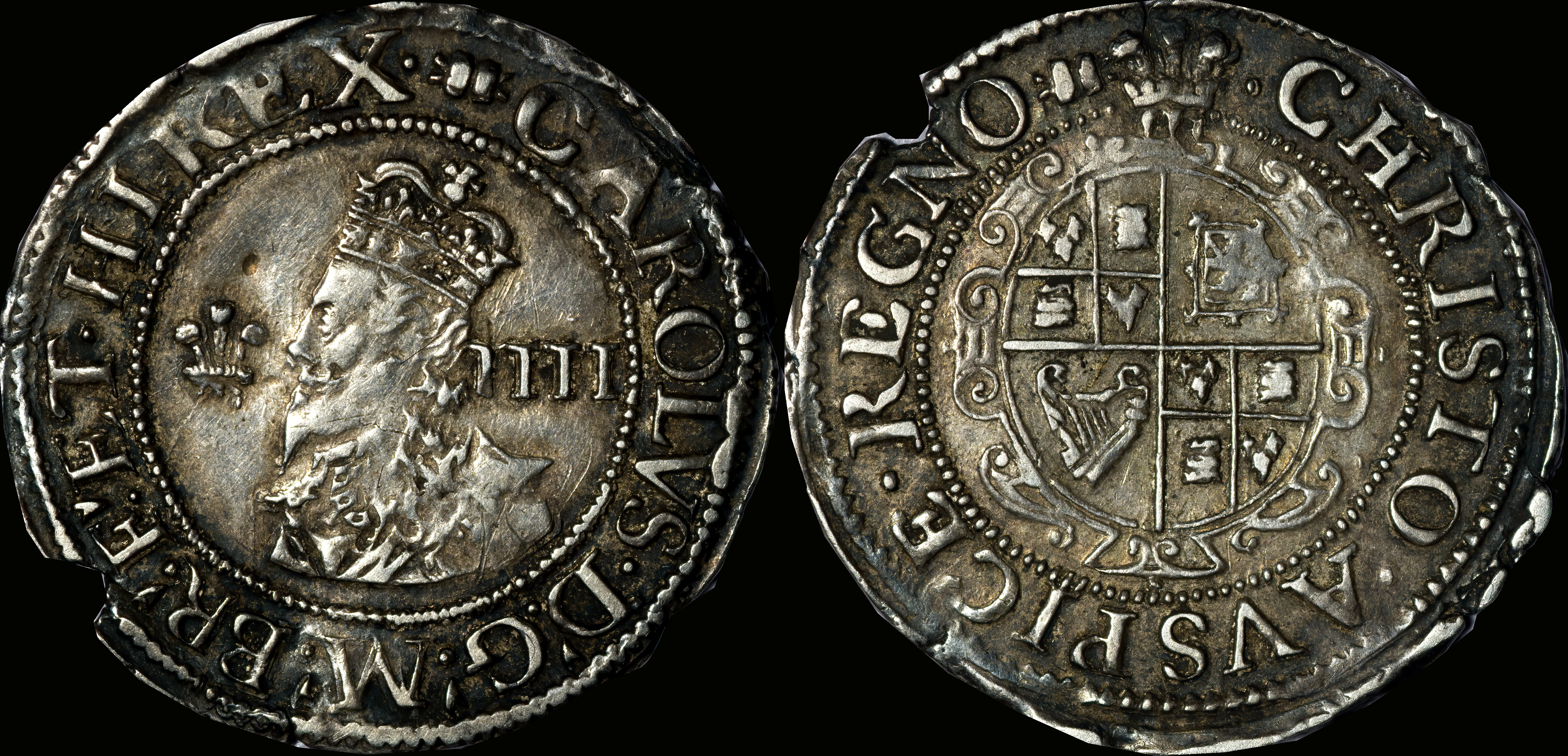 CAROLVS D G MAG BR FR ET HIB REX CHRISTO AVSPICE REGNO |
