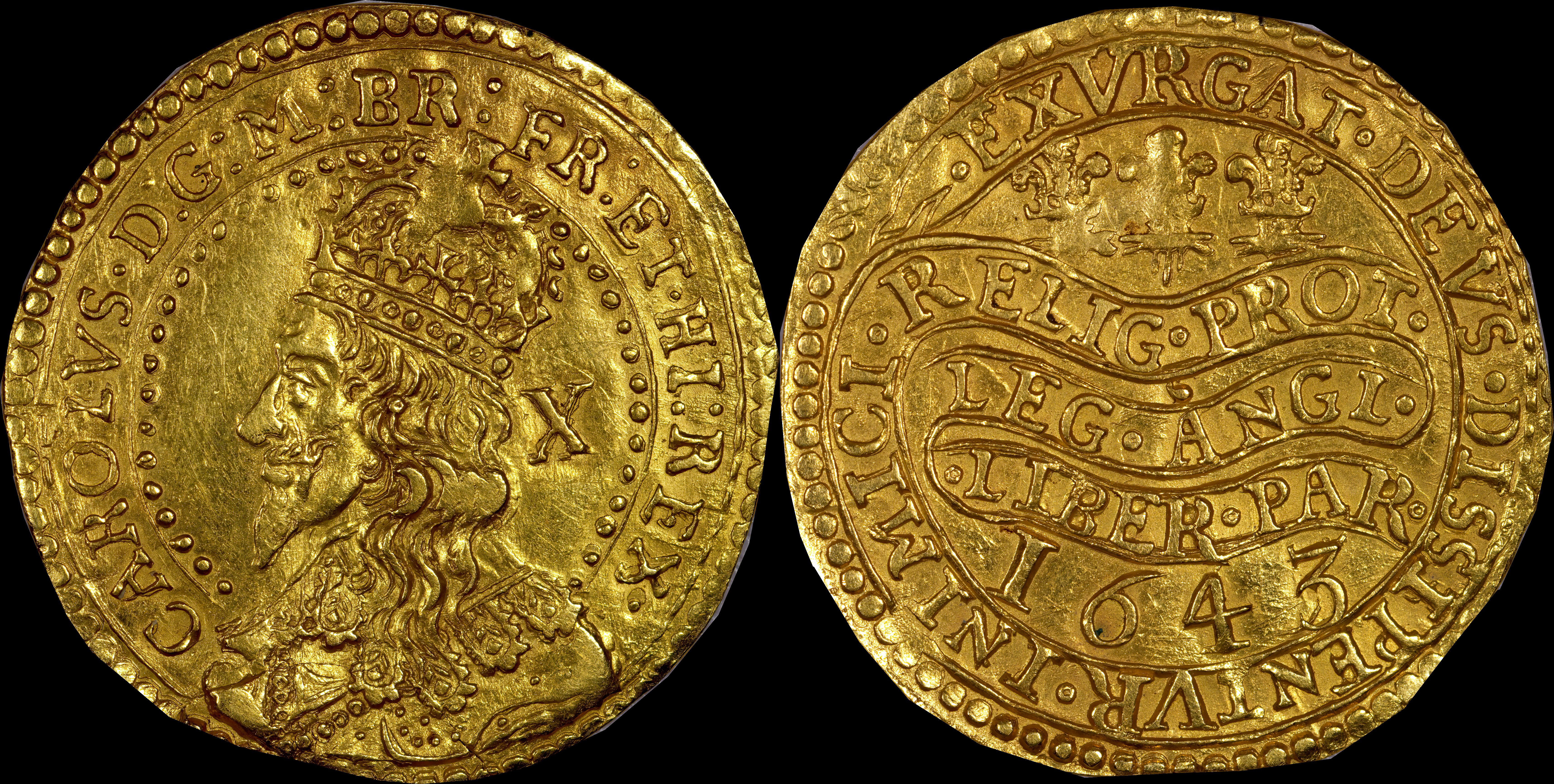 CAROLVS D G MAG BRIT FRAN ET HIB REX CHRISTO AVSPICE REGNO |