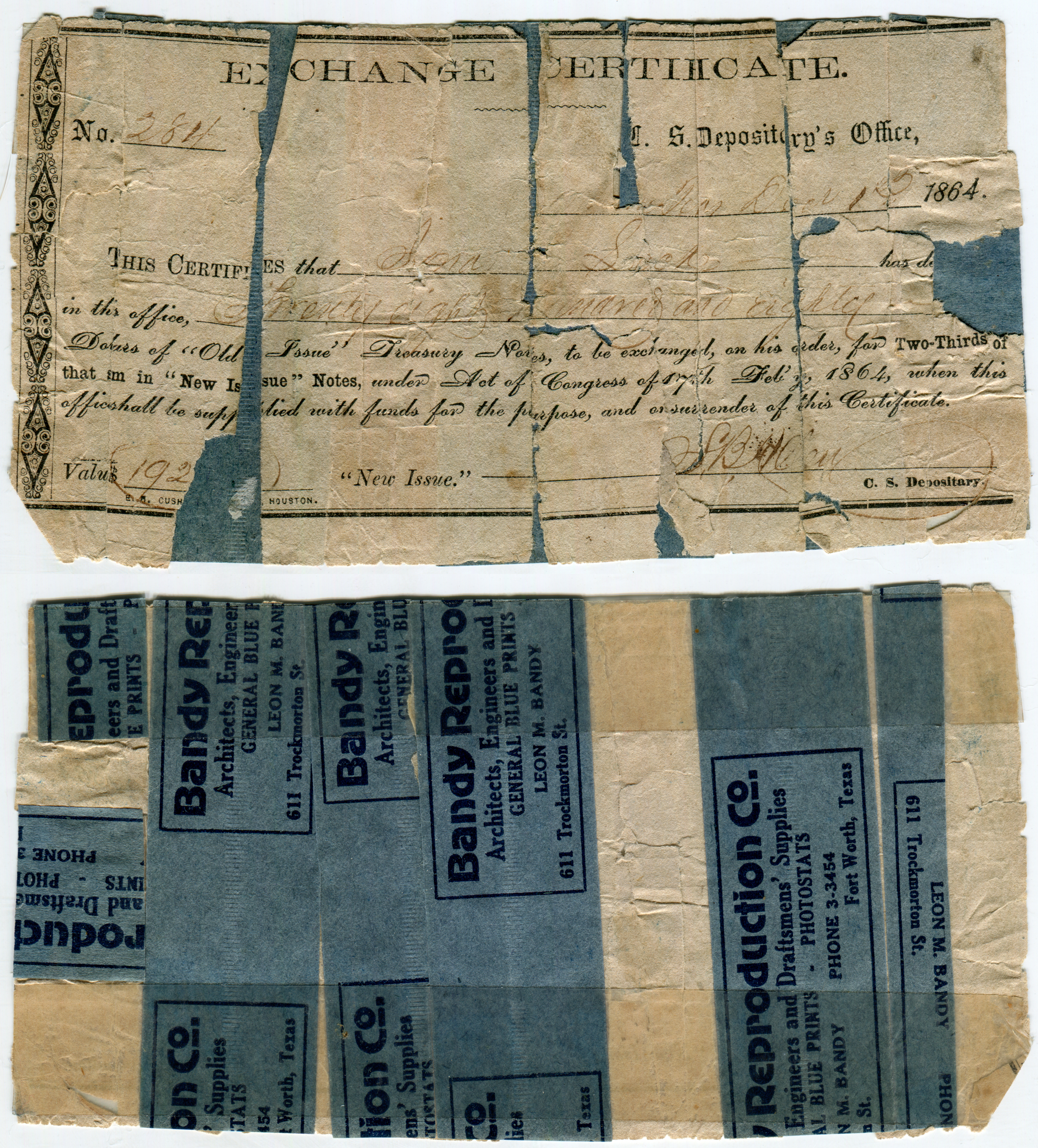 T-39, Cr#294, PF-13 (CR?, FR1). Texas postmark.