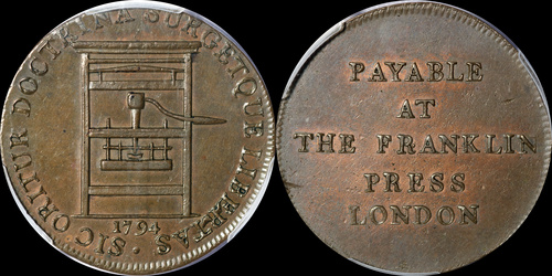 Crosby 2-B, W-1865. Stack's Sep/Oct 2010 sale #2246. Minted in Birmingham, England.