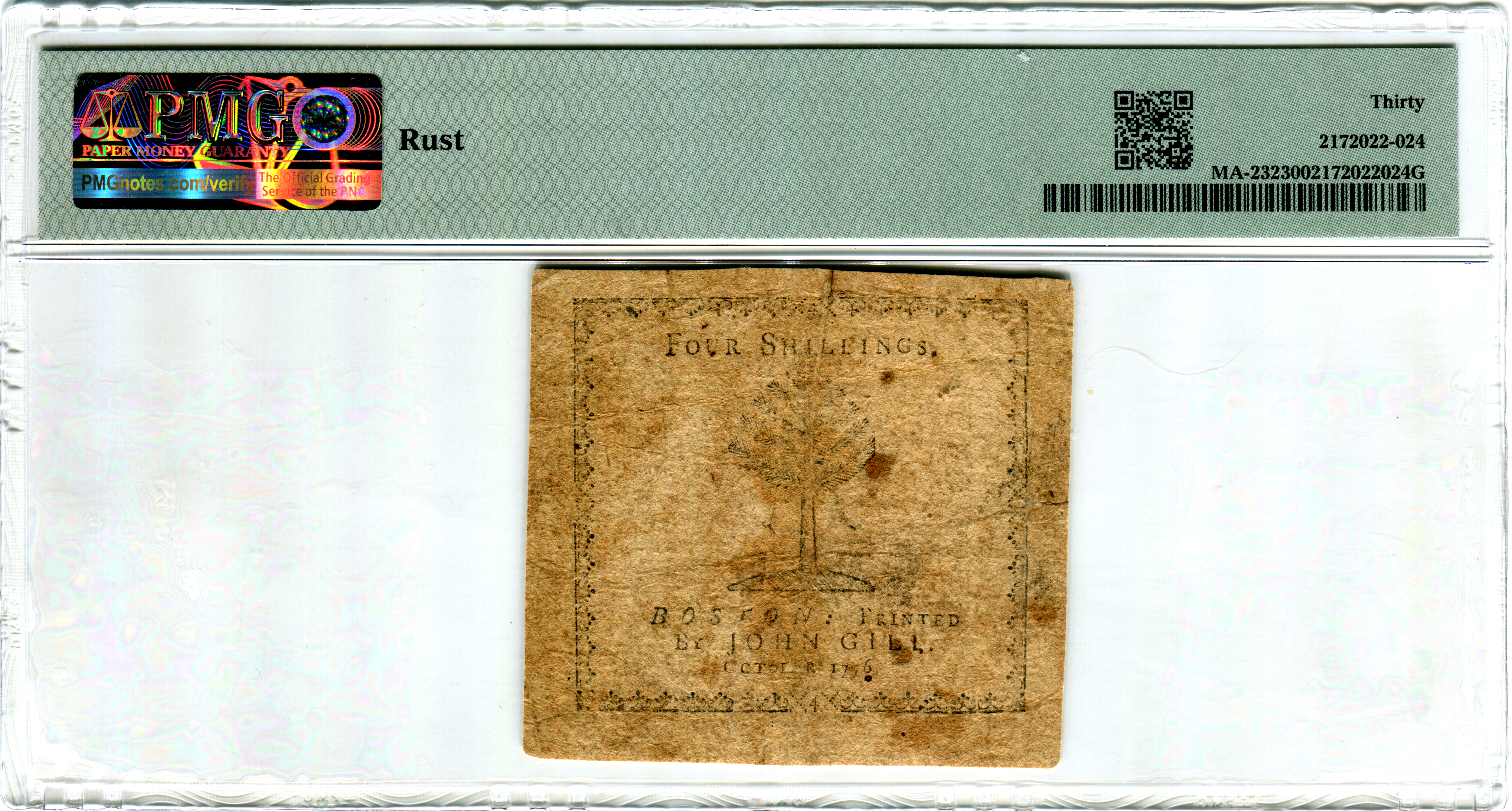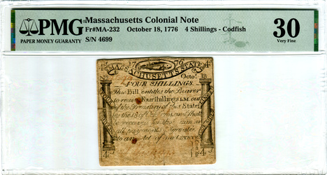 Massachusetts. October 18, 1776. 5,143 printed. Front engraved and printed by Paul Revere ("codfish" note).