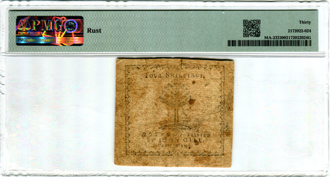 Massachusetts. August 18, 1775. 10,000 printed. Engraved and printed by Paul Revere.