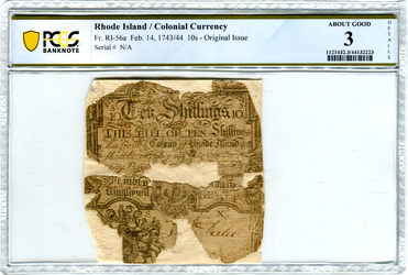 Fr#RI-300. Rhode Island. May 1786. 10,000 printed but 96% of the overall issue was burned by the State between 1793 and 1803.