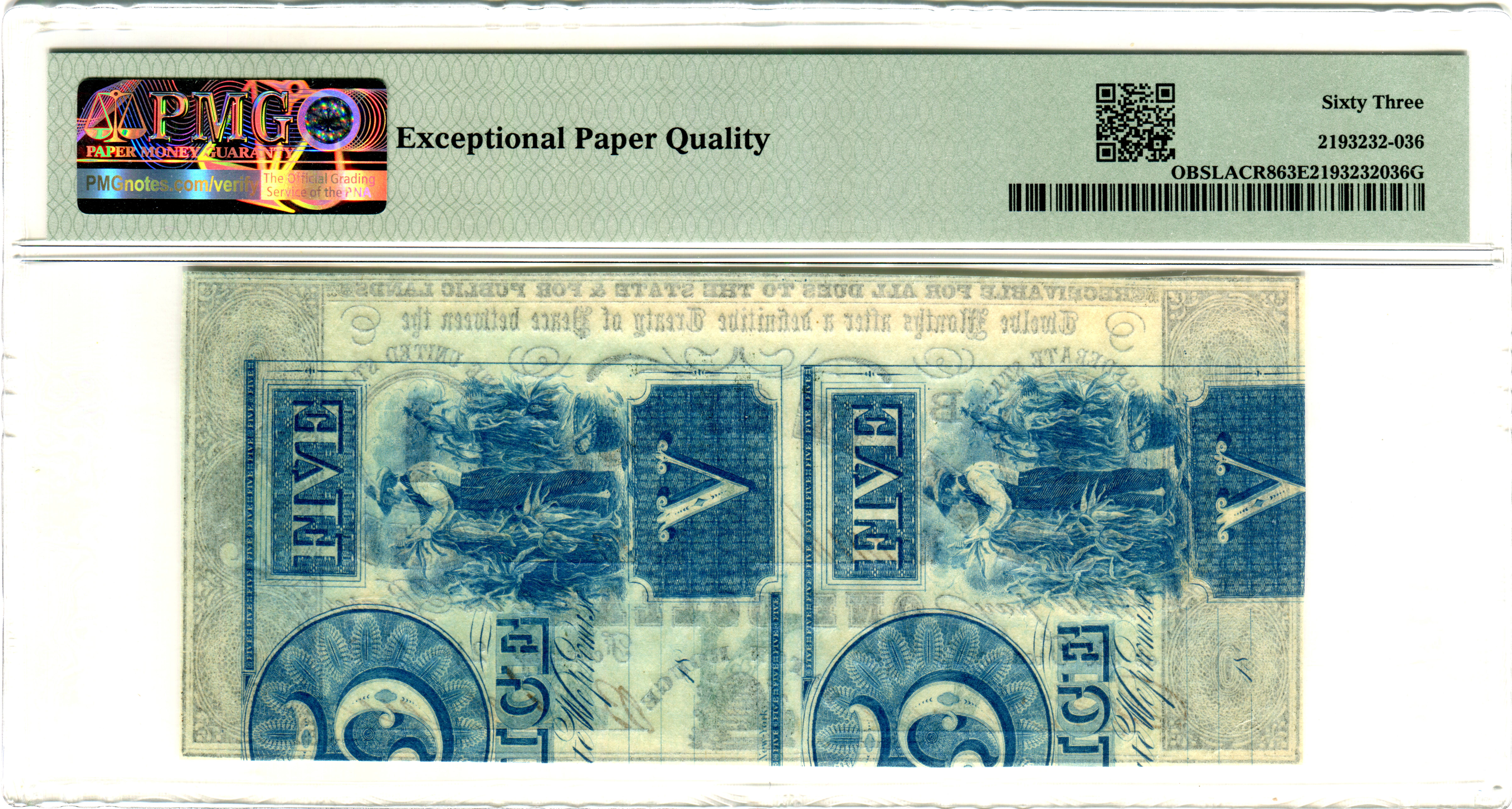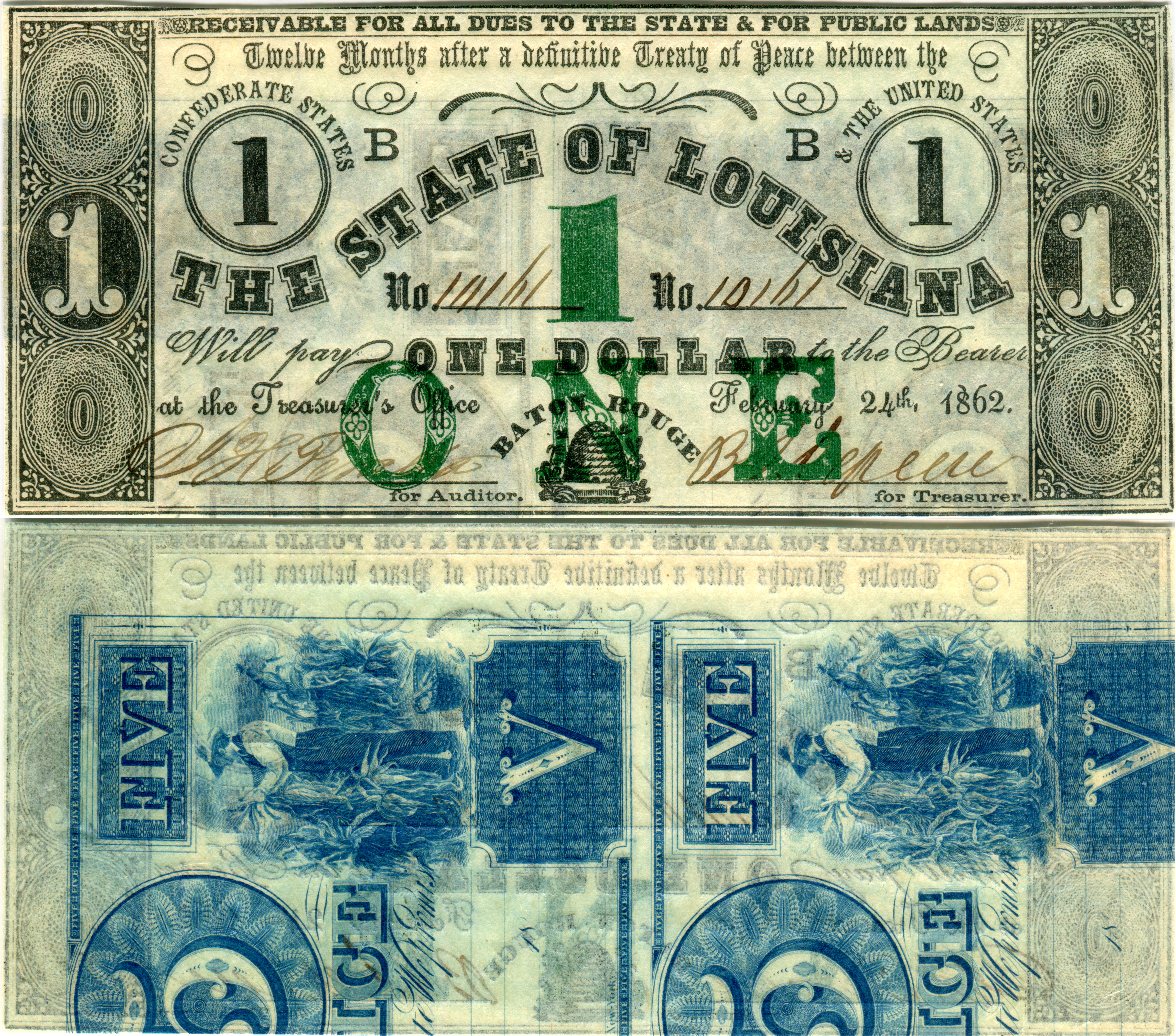 Savannah, Georgia. Mechanics Savings & Loan Assocation $5 note overprinted on uncut $1 notes from the La Grange Bank of La Grange, GA.