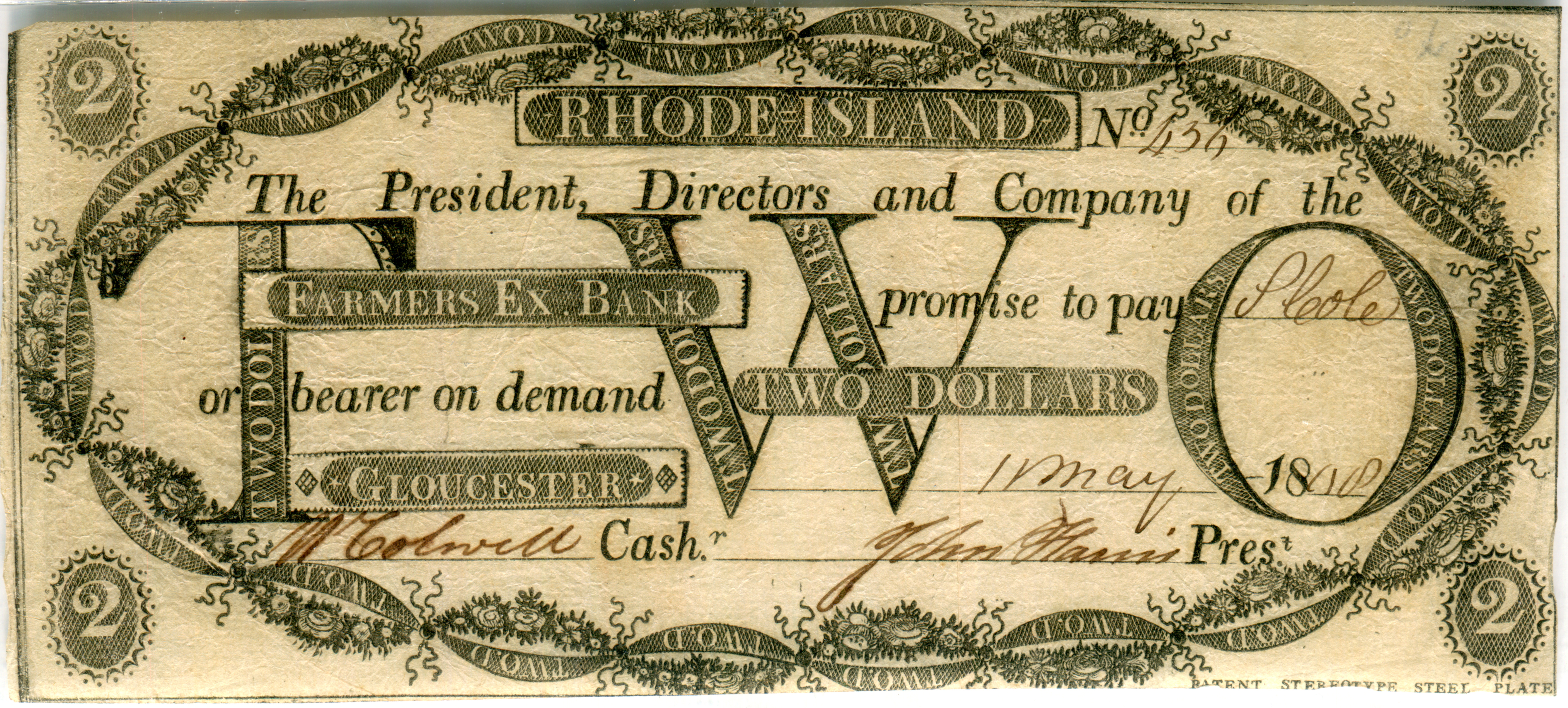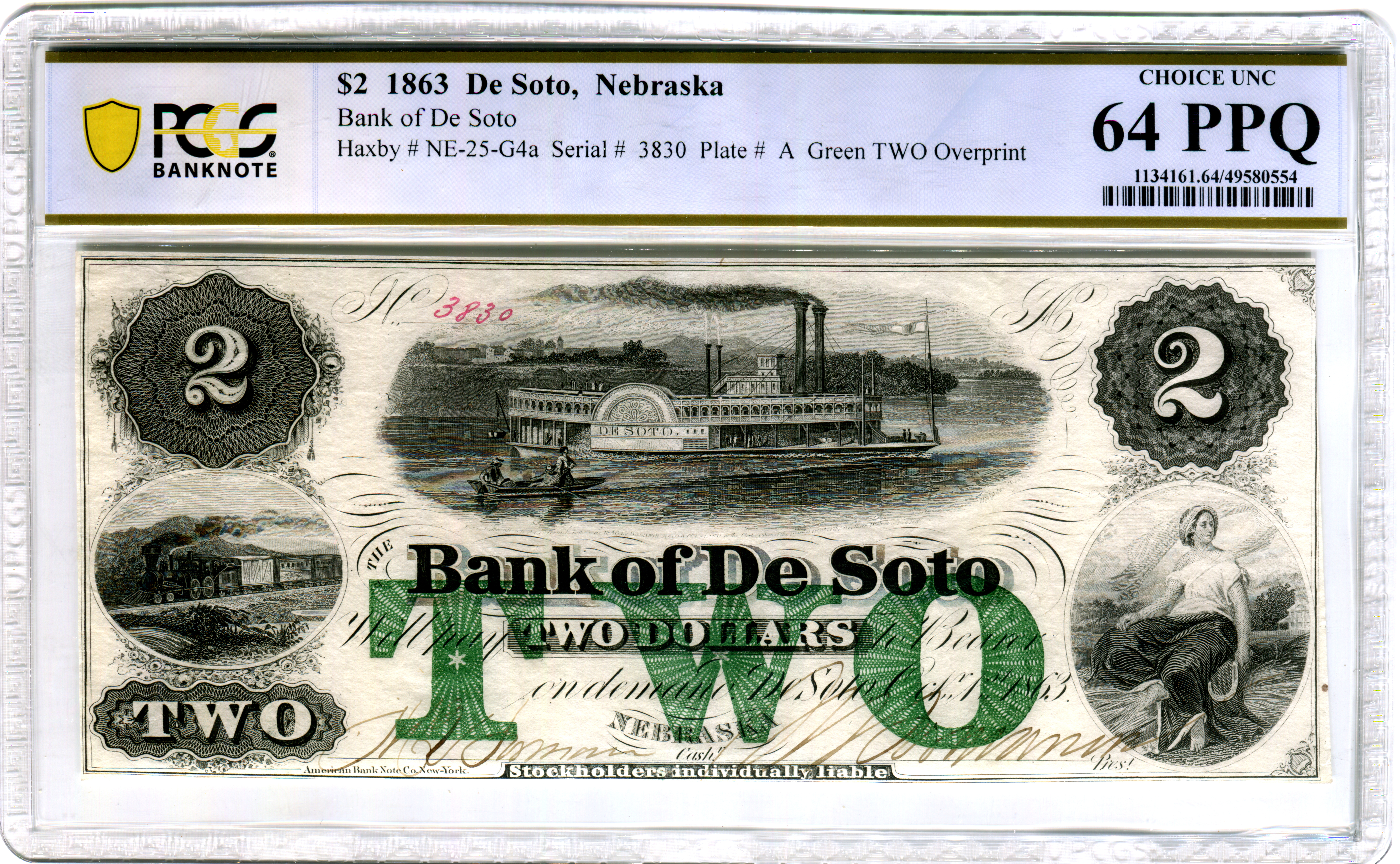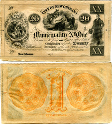 Natchez, Mississippi. Printed on a sheet of unused $2 and $3 notes from Natchez.