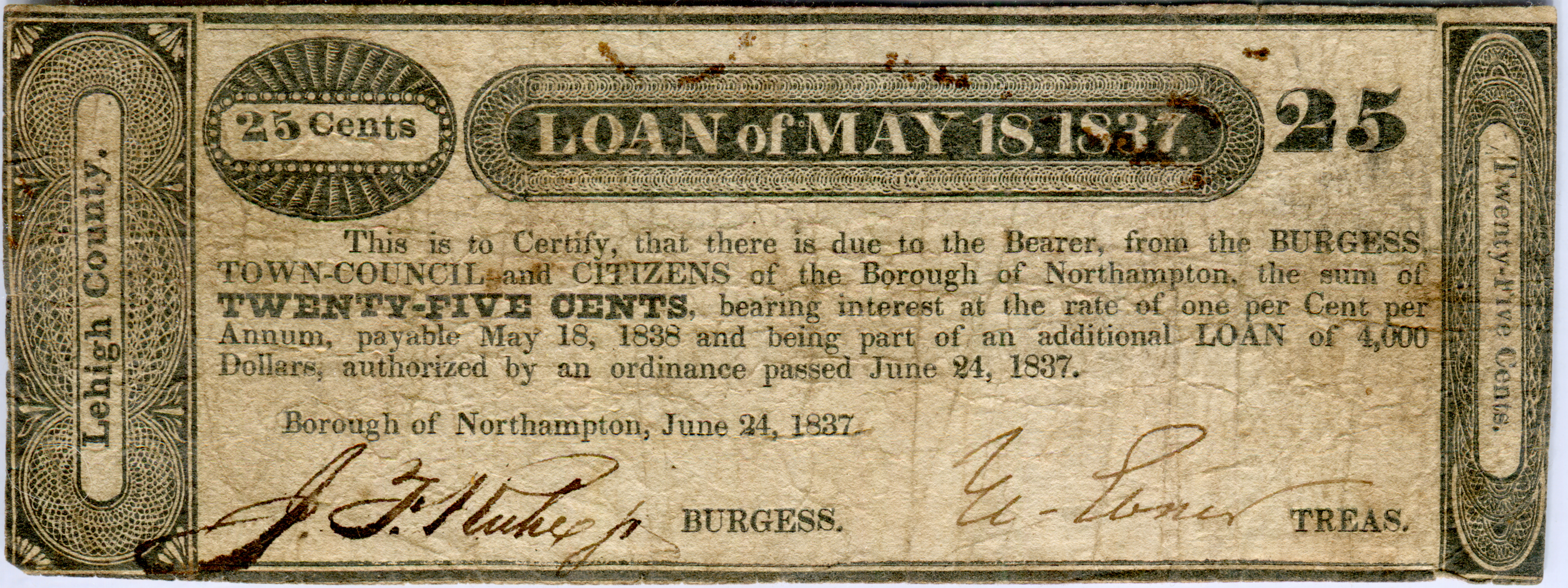 Borough of North Hampton, Pennsylvania. Municipal loan certificate.