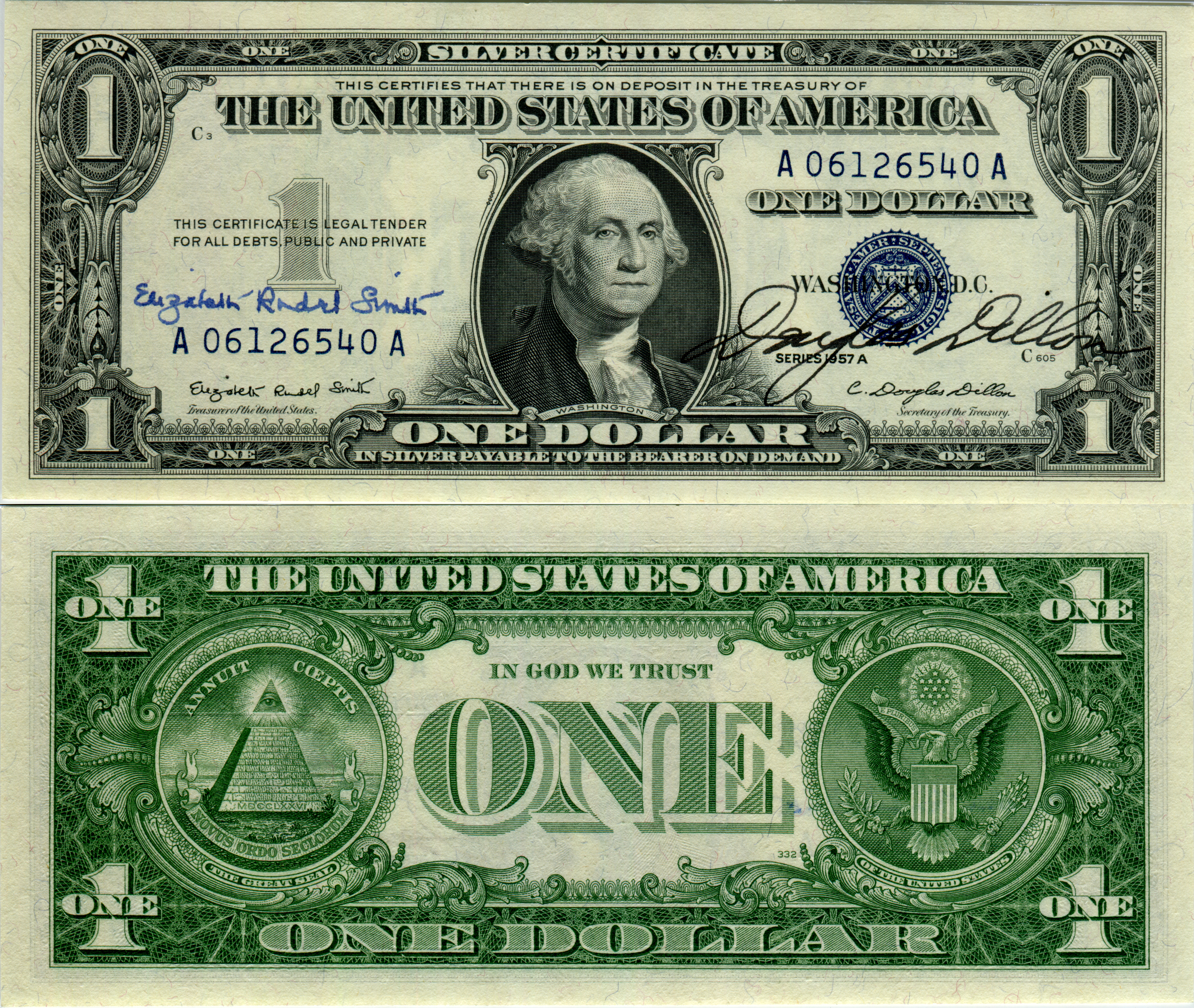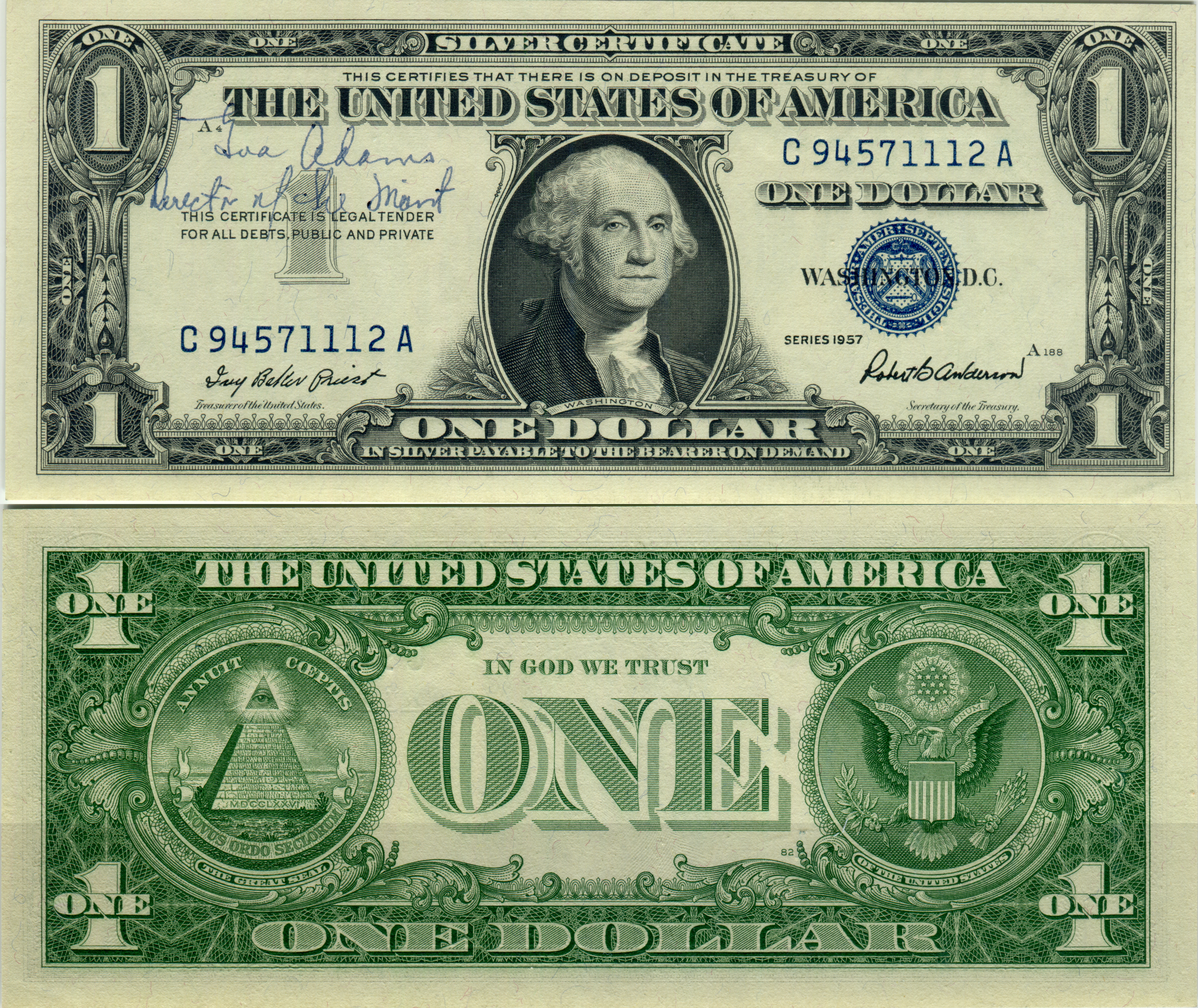 Fr#1619. Priest/Anderson. Signed by Eva Adams, mint director (1961-69).