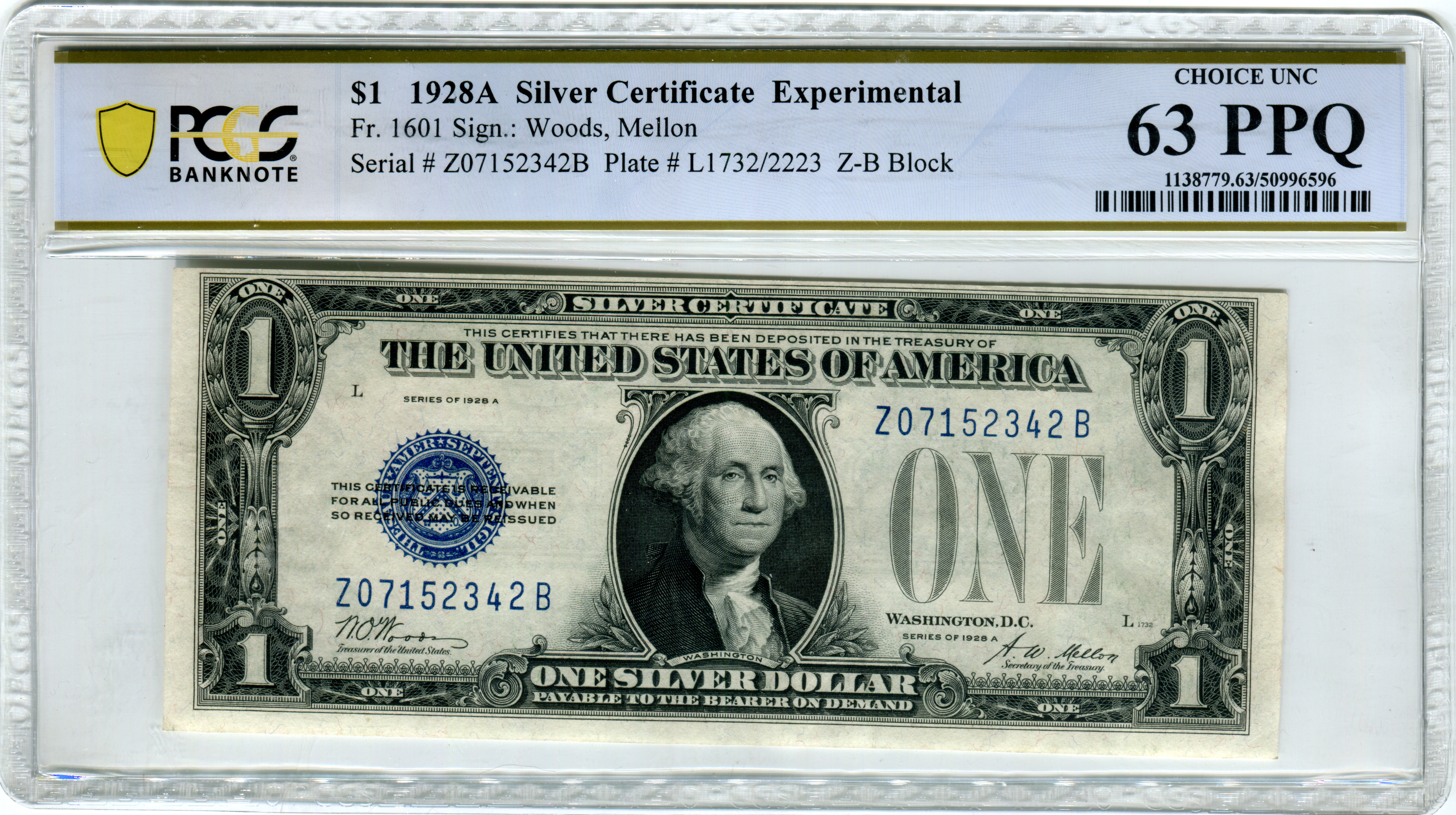 Fr#1601exp. Woods/Mellon. Experimental paper XB block. Serial number consecutive with previous.