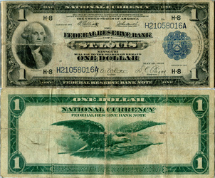 Fr#1613W. Clark/Snyder. Signed by Clark. Reverse changeover note - first serial number of the wide reverse of the MF block.