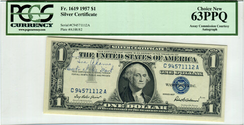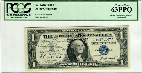 Fr#1619. Priest/Anderson. Signed by (then assistant) Chief Engraver Frank Gasparro (1962-65).