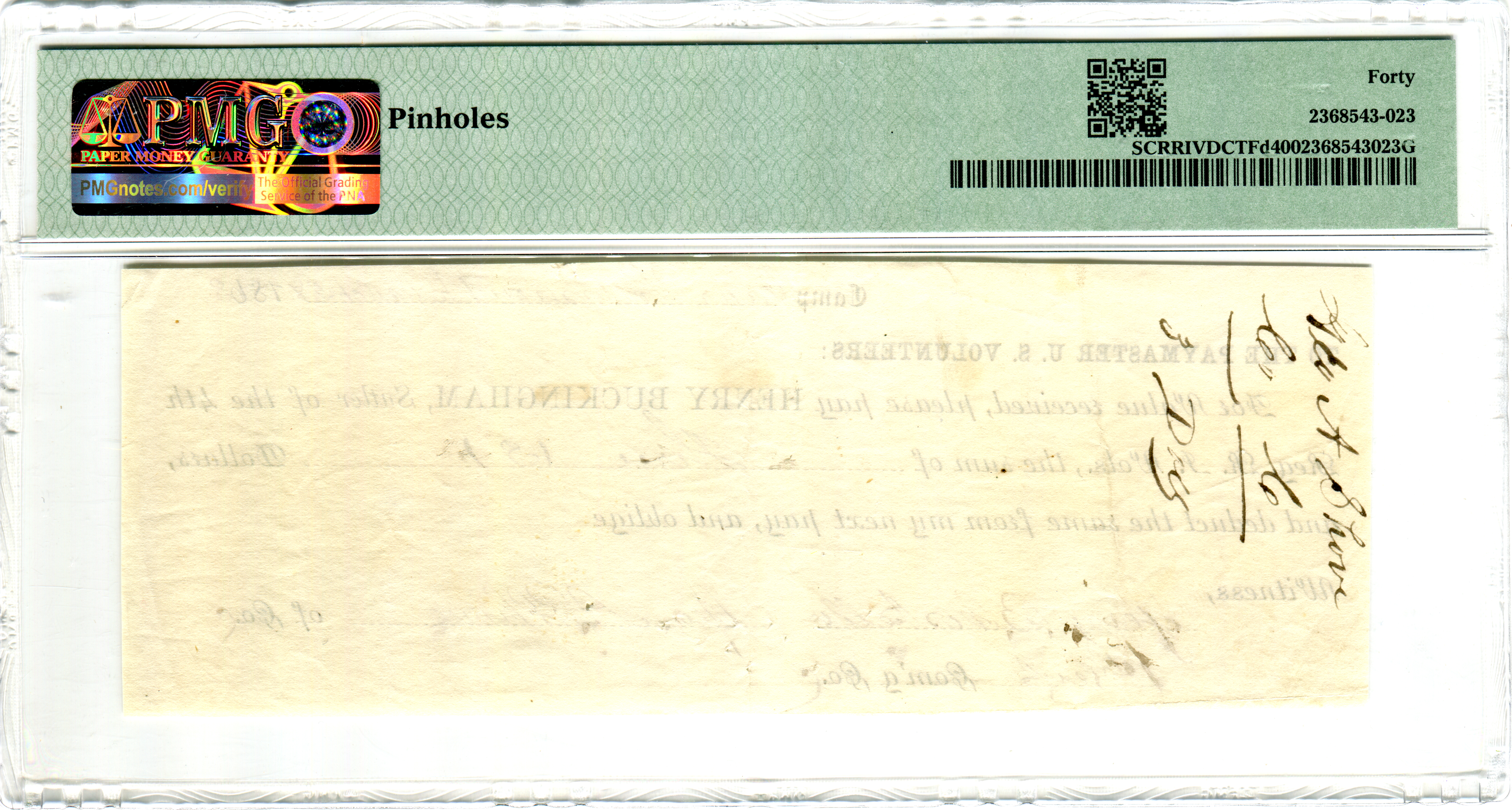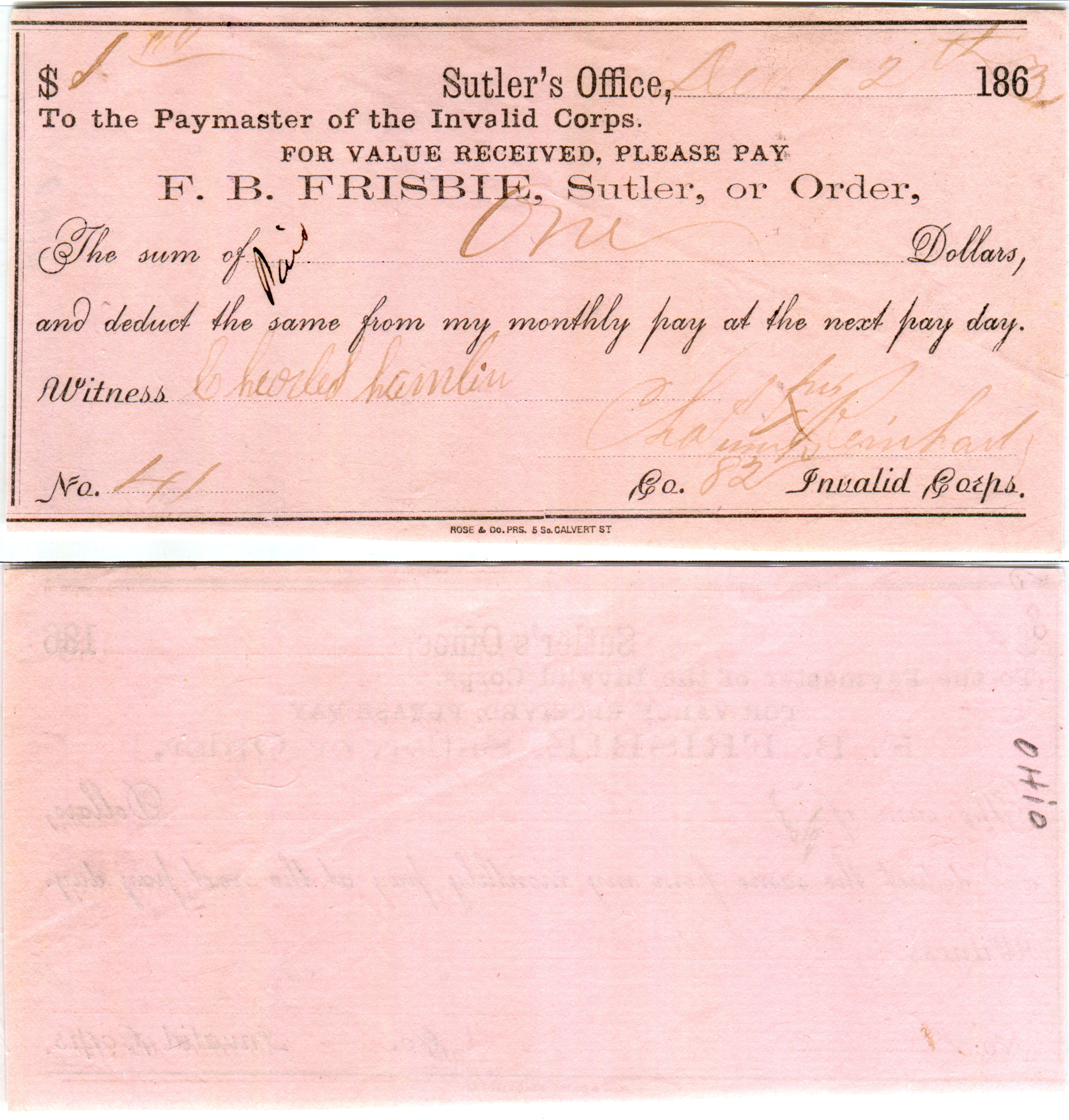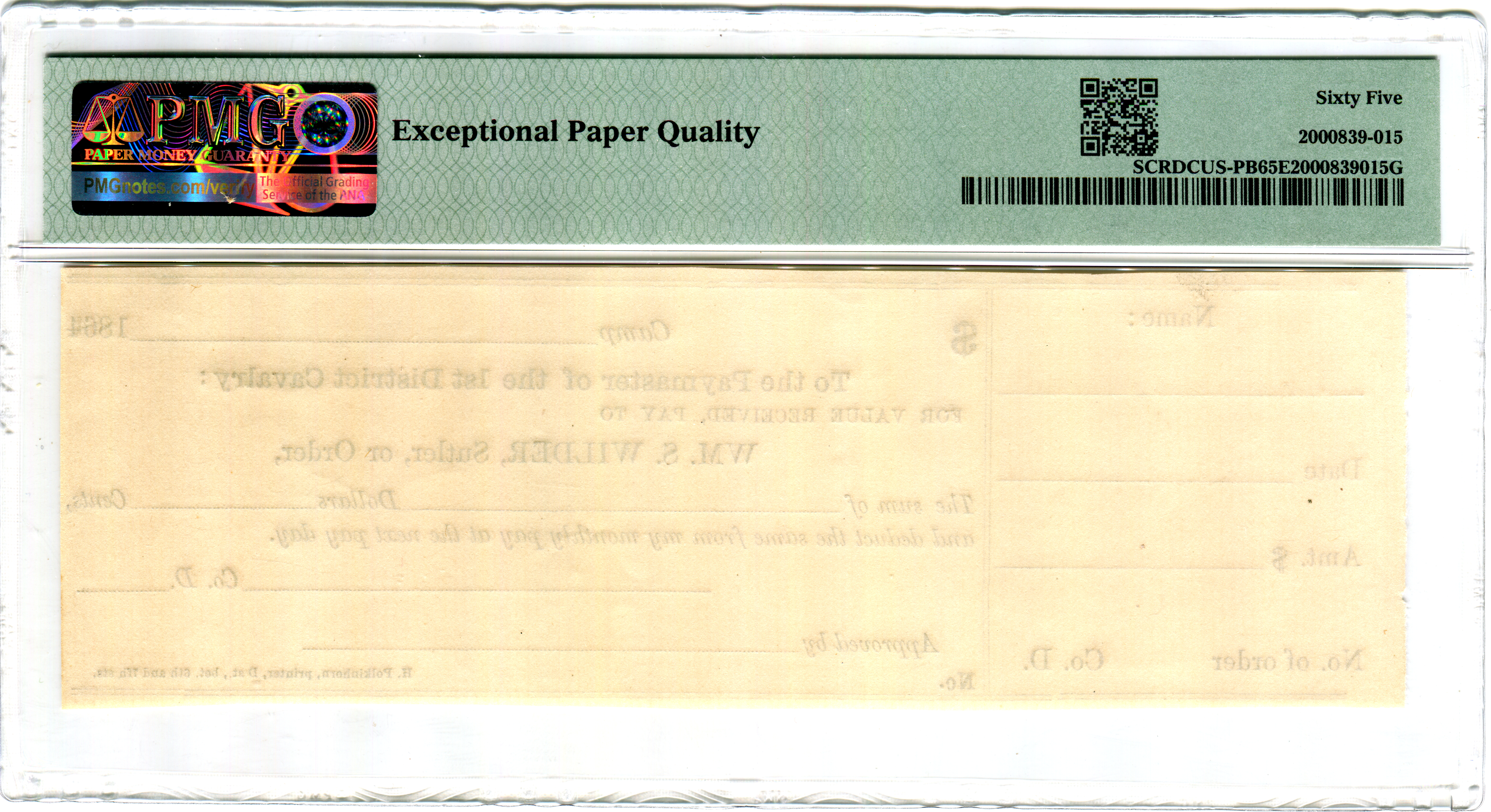 M.S. Williamson, Camp Anderson Michigan 29th Regiment. Serial number 1 and plate note in Keller.