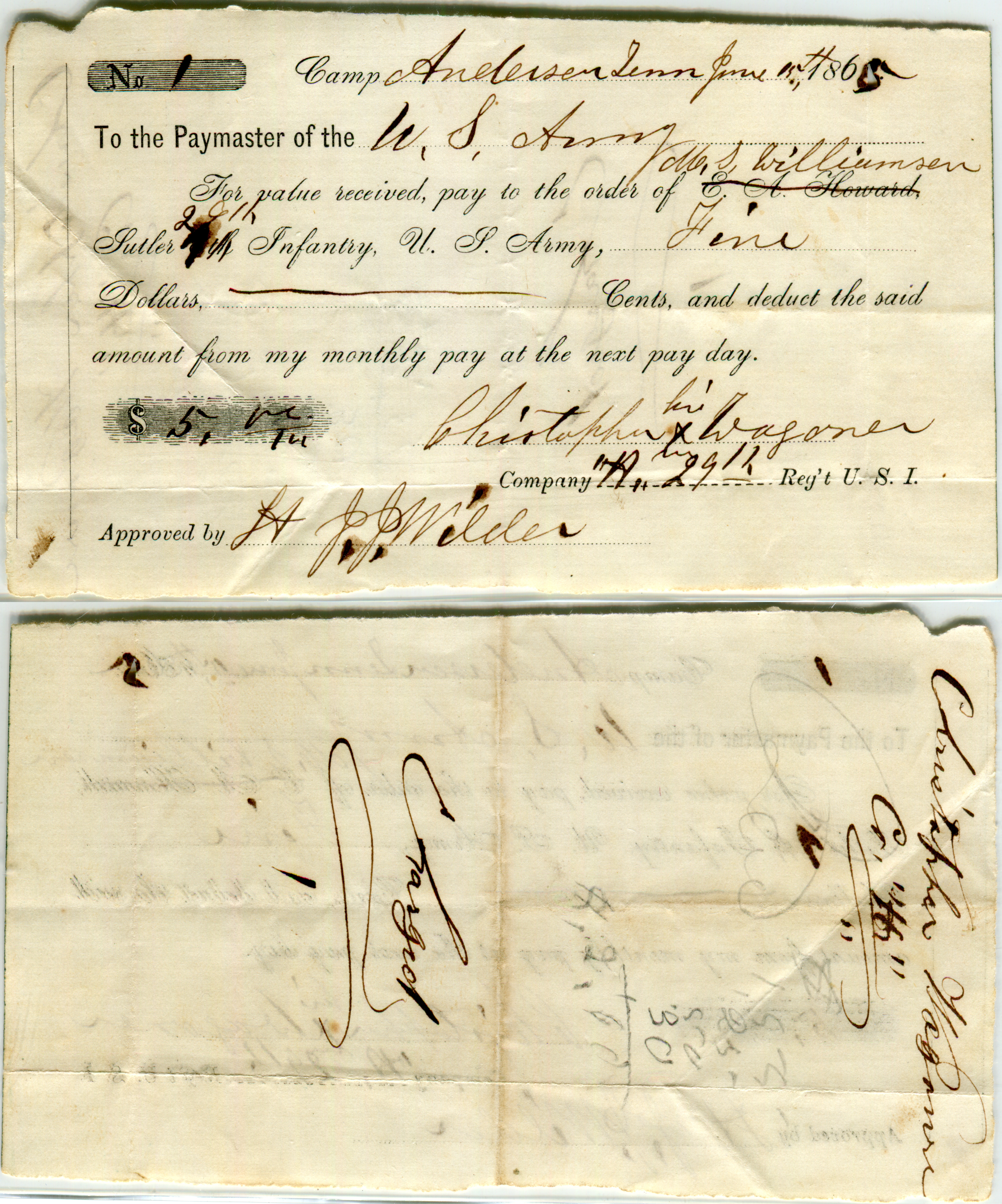 M.S. Williamson, Camp Anderson Michigan 29th Regiment.