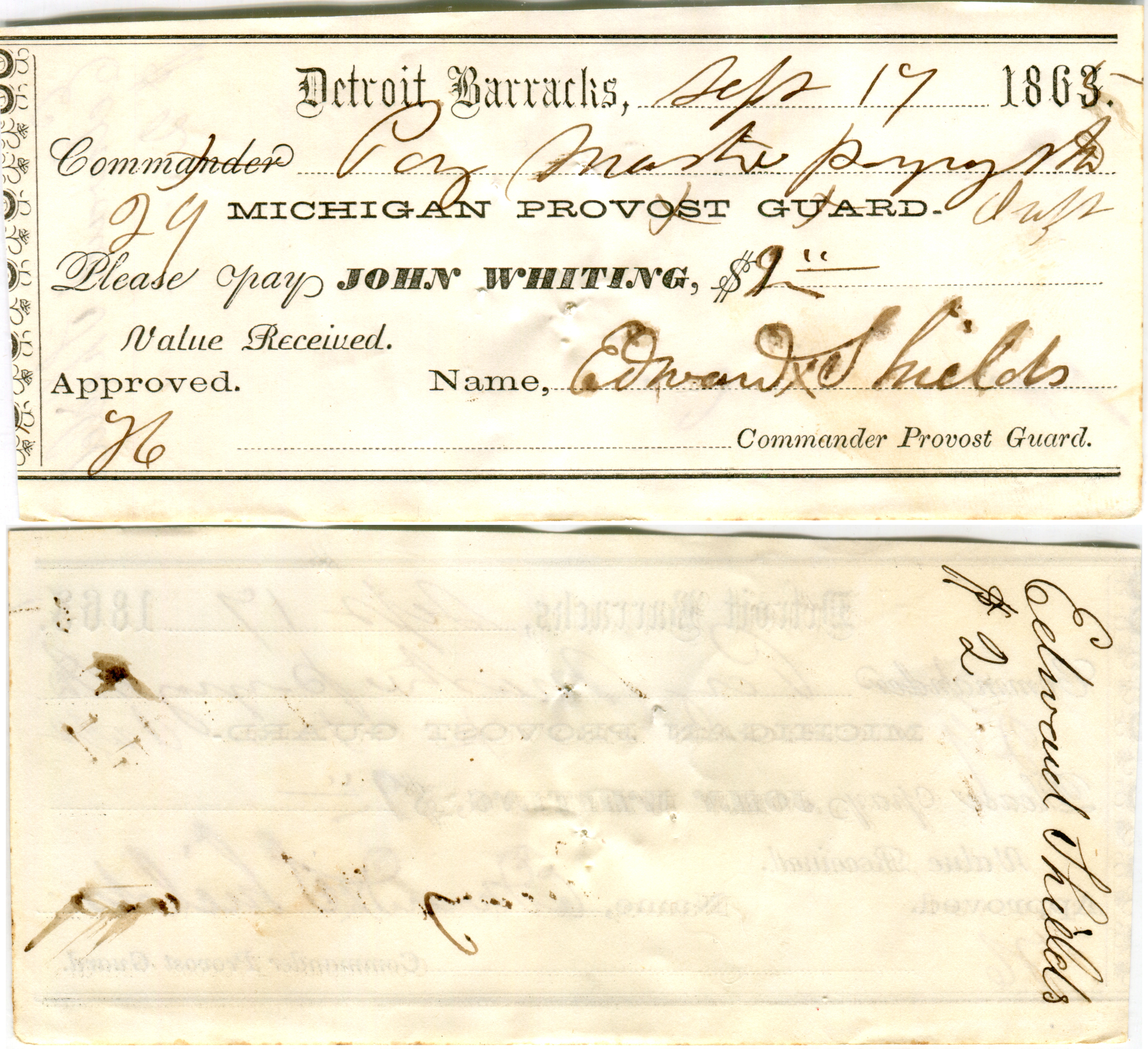 John Whiting, Detroit Barracks, Michigan Provost Guard.