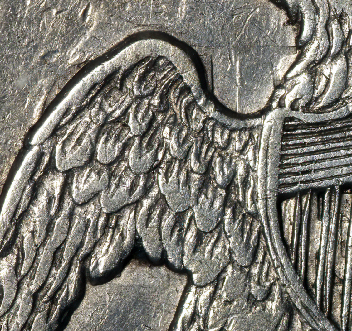 Reverse die clash with the reverse of a Flying Eagle cent.